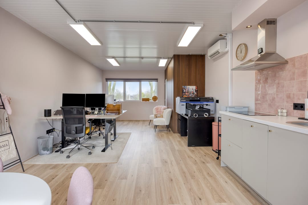 Op bedrijventerrein Heimanswetering in Alphen aan den Rijn bieden wij deze verrassend lichte en modern afgewerkte bedrijfs-/kantoorruimte van circa 93 m² BVO aan. Een plek waar functionaliteit en comfort samenkomen, en die dankzij de directe inzetbaarheid ideaal is voor ondernemers die zonder gedoe willen starten.