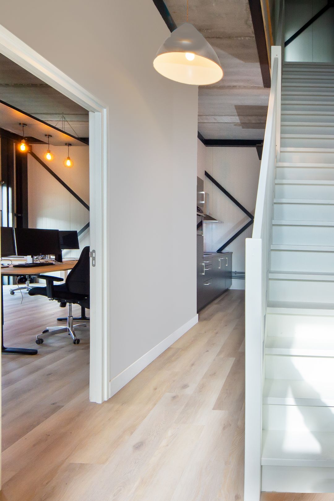 De eerste verdieping beschikt over een ruime open kantoorruimte.