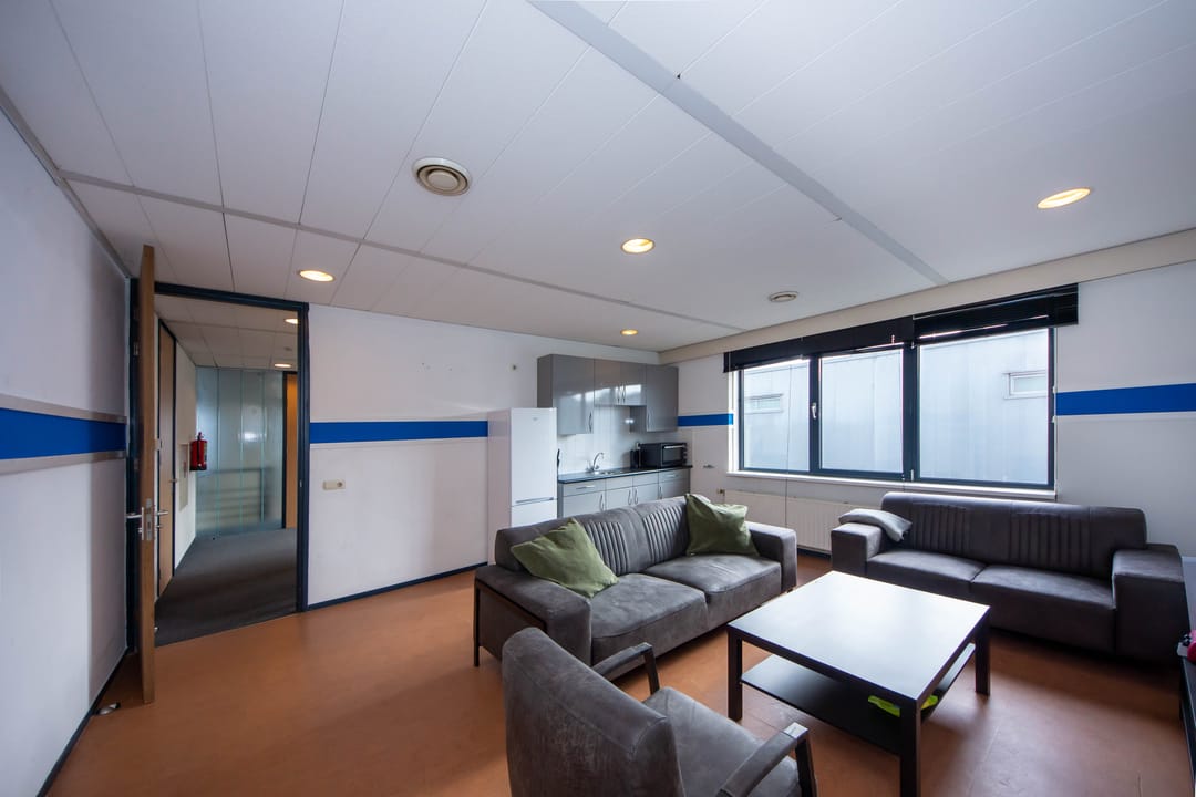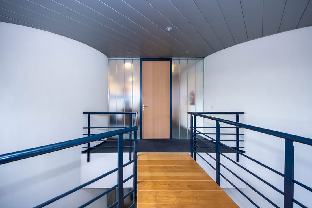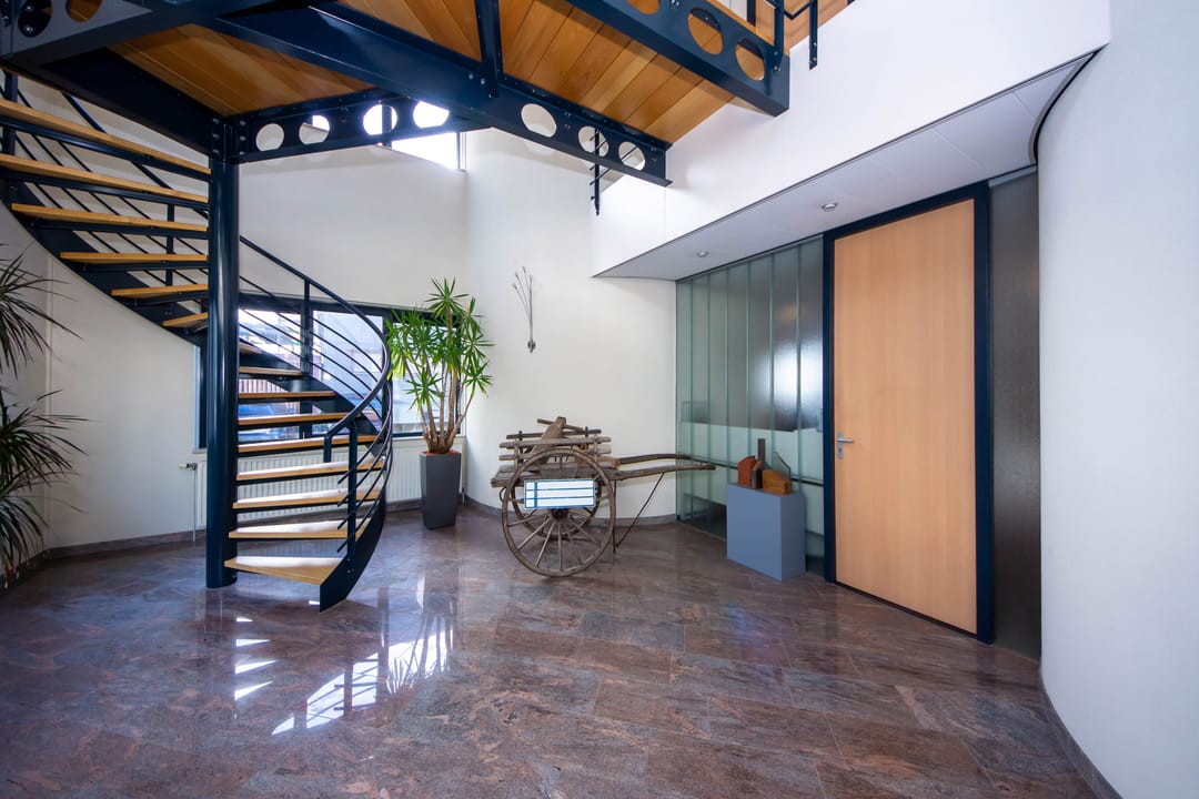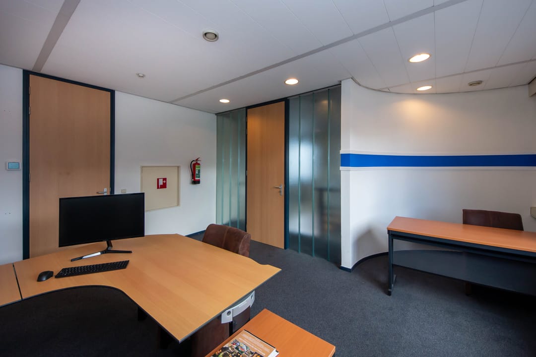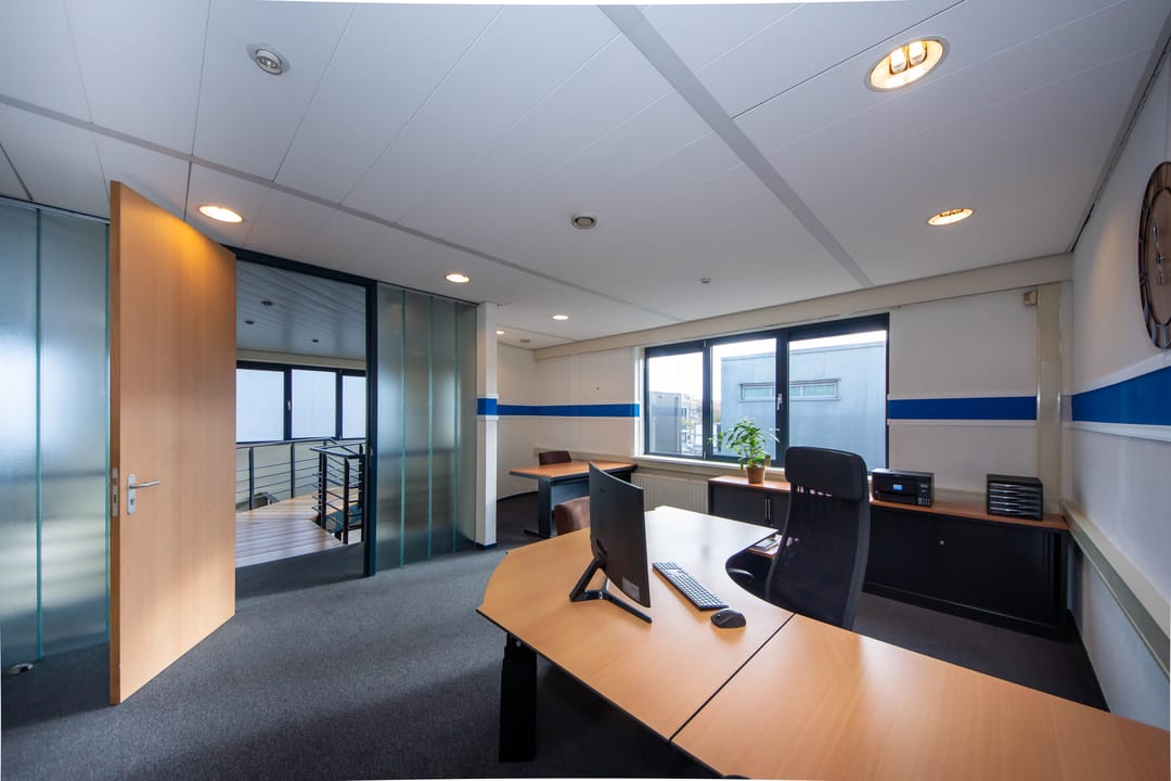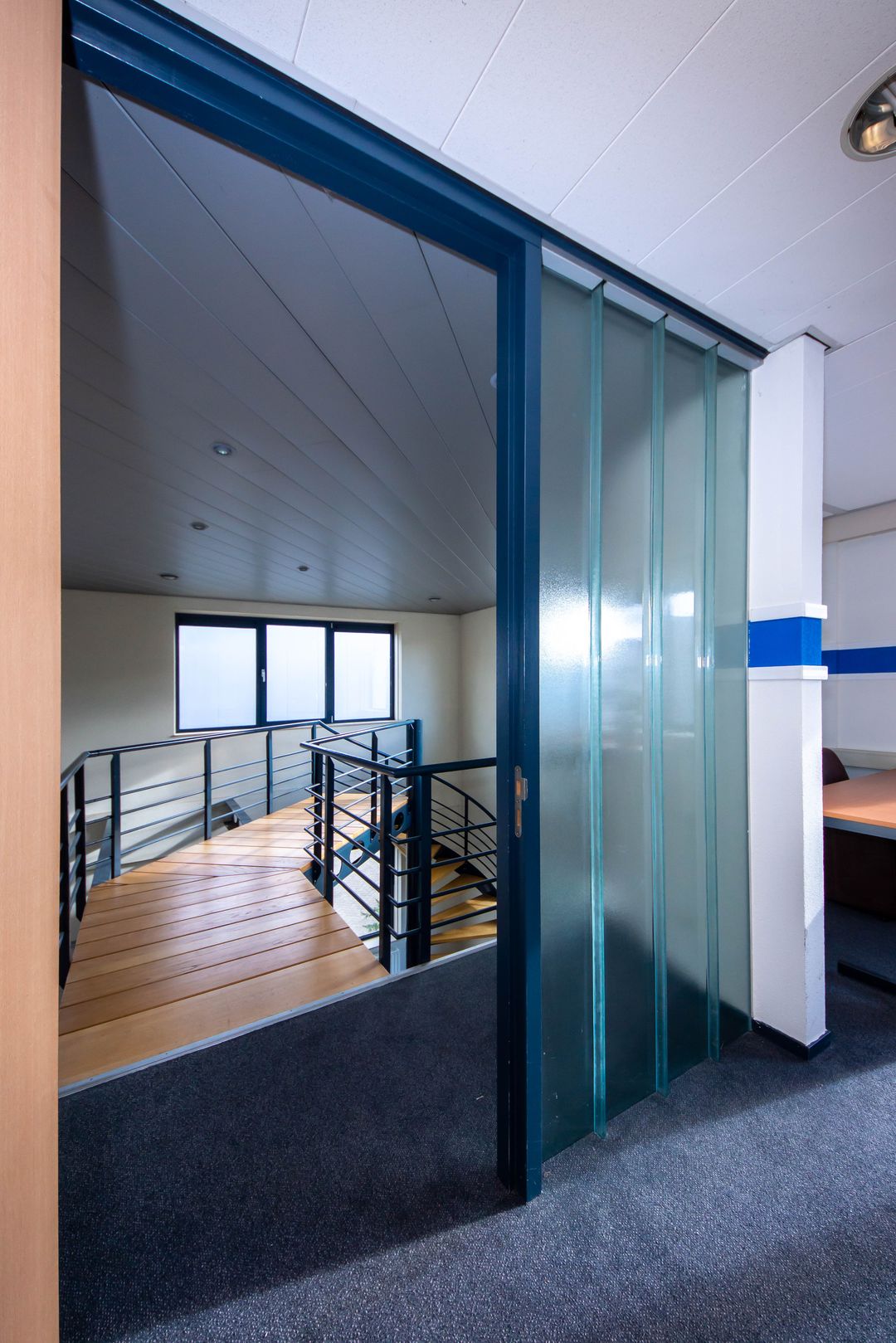 Het kantoor (circa 87 m² v.v.o.) bevindt zich op de tweede verdieping en beschikt over een eigen entree met een nette, ruime ontvangsthal op de begane grond. De kantoorverdieping is ingedeeld in meerdere kamers en heeft een rustige, verzorgde uitstraling – ideaal voor representatieve bedrijfsvoering.