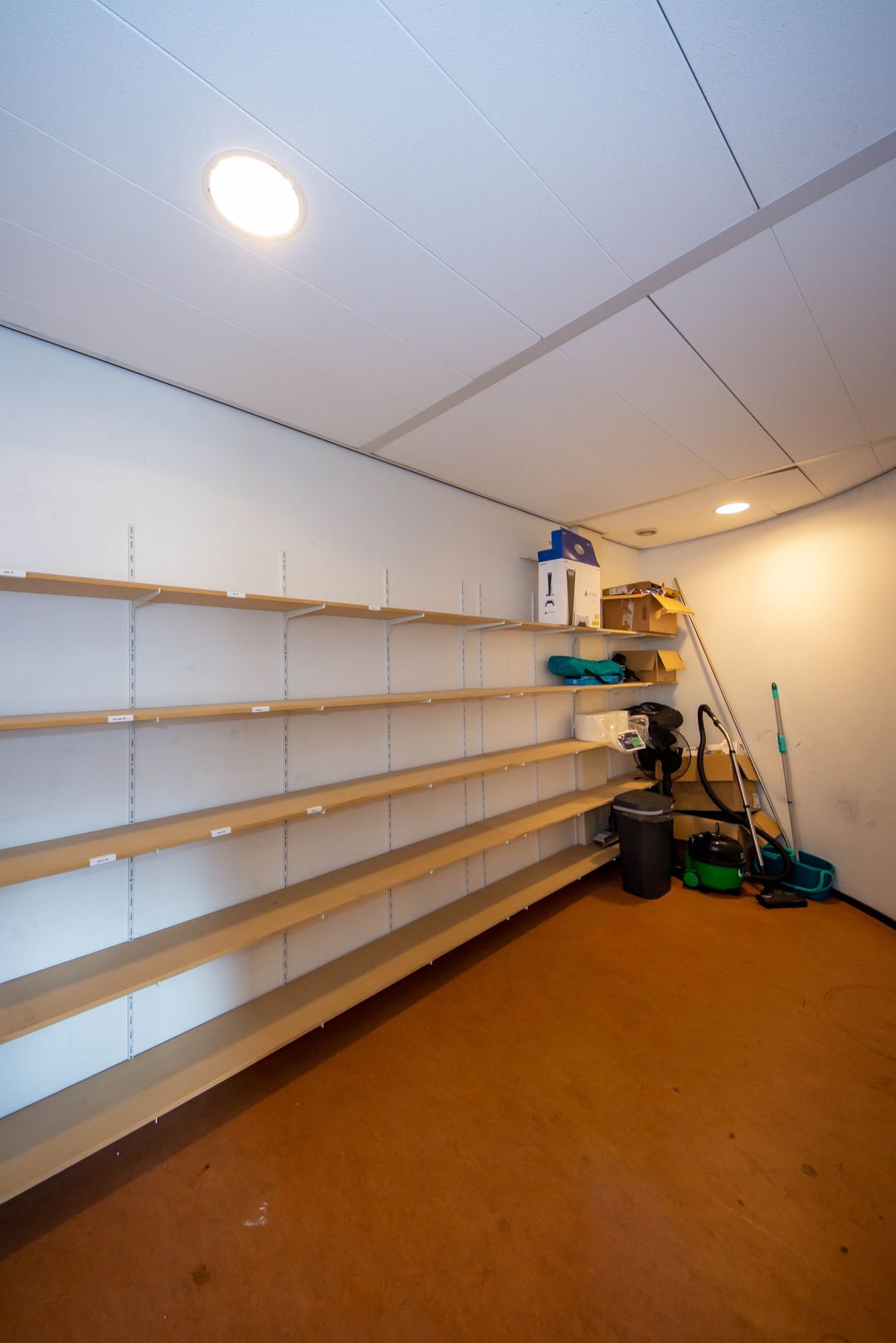 - Verdieping: kantoor met systeemplafond, verlichting, pantry, toilet, vloerbedekking, jaloezieën en radiatoren.