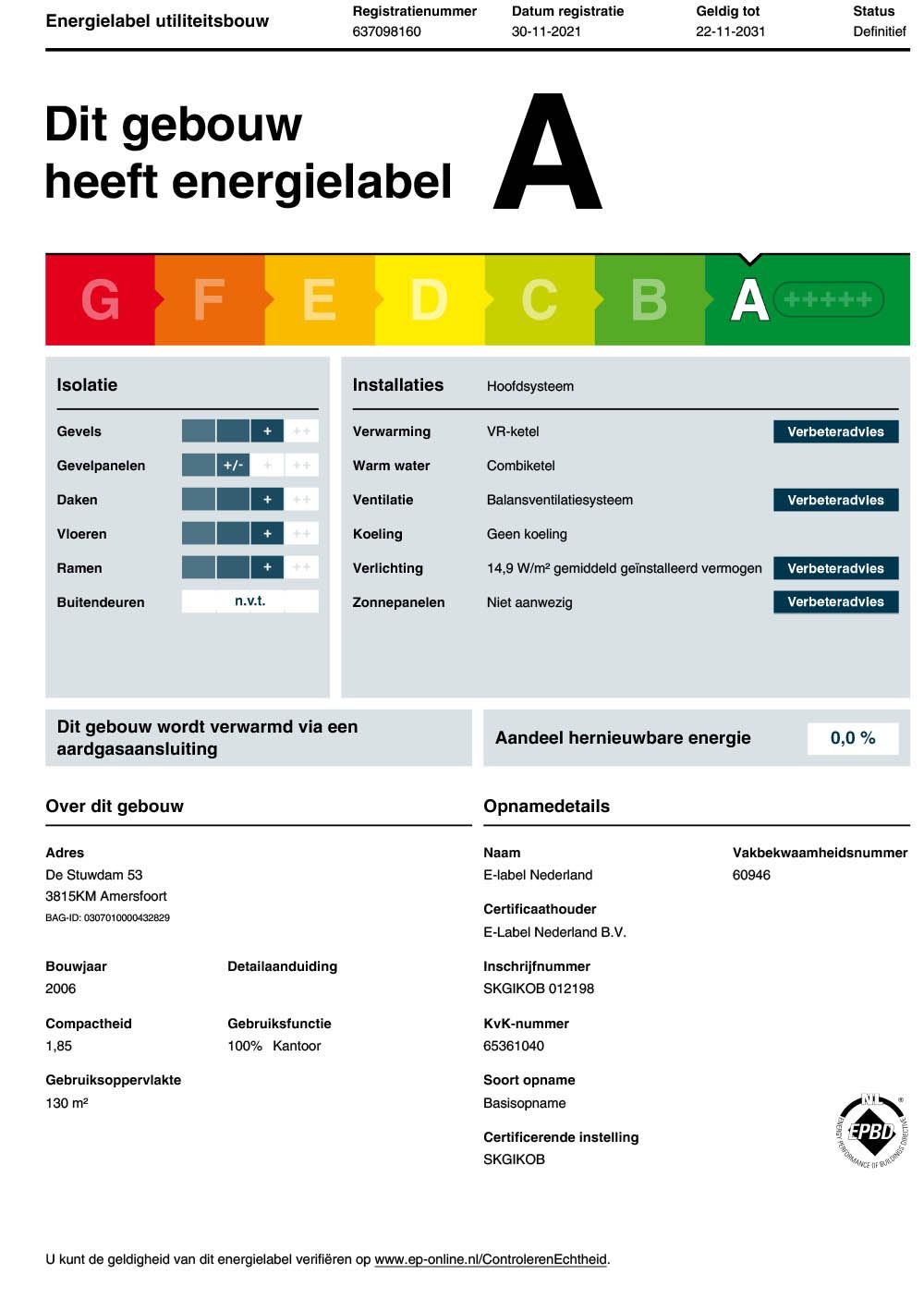 De unit is voorzien van 36 zonnepanelen, wat resulteert in een lage energierekening. Het gehele dak is 3 jaar geleden vernieuwd. Direct voor de unit bevinden zich vier parkeerplaatsen, waaronder parkeergelegenheid met aansluiting voor elektrisch laden.