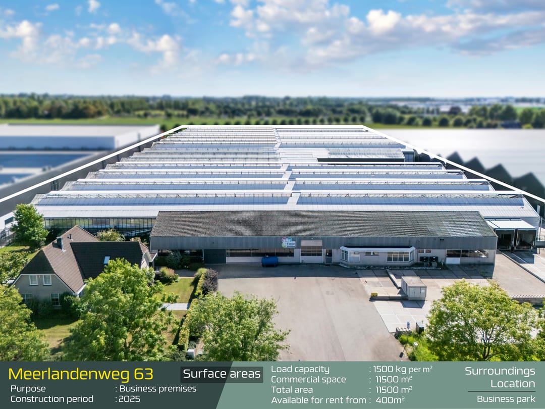 Het object is in de directe nabijheid van de bloemenveiling Royal FloraHolland te Aalsmeer en op nog geen 10 km verwijderd van Schiphol. De Meerlandenweg is bereikbaar via de N201 welke op de diverse verkeersaders van de Randstad, zoals de A4, de nieuwe A5 en de A9, is aangesloten.