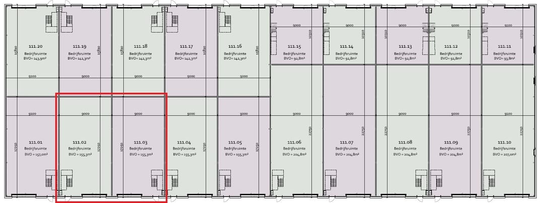 De energiezuinige en duurzame bedrijfsunits bestaan per unit uit een bedrijfsruimte op de begane grond van ca. 155,3 m² en een eerste verdieping van ca. 105,3 m². De twee units bij elkaar opgeteld hebben een totale oppervlakte van ca. 310,6 m² op de begane grond en ca. 210,6 m² op de eerste verdieping.