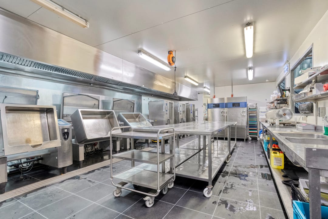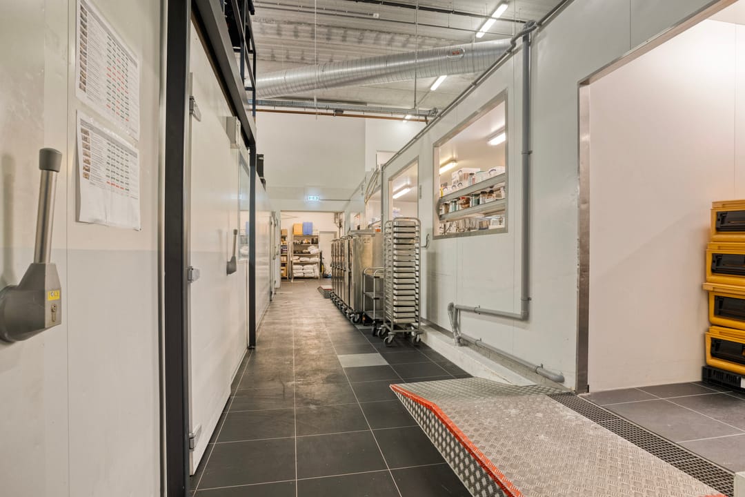 De productiekeuken zelf is in uitstekende staat en professioneel ingericht. De ruimte is jarenlang gebruikt voor de productie van kant-en-klaarmaaltijden voor supermarkten in het hogere segment.