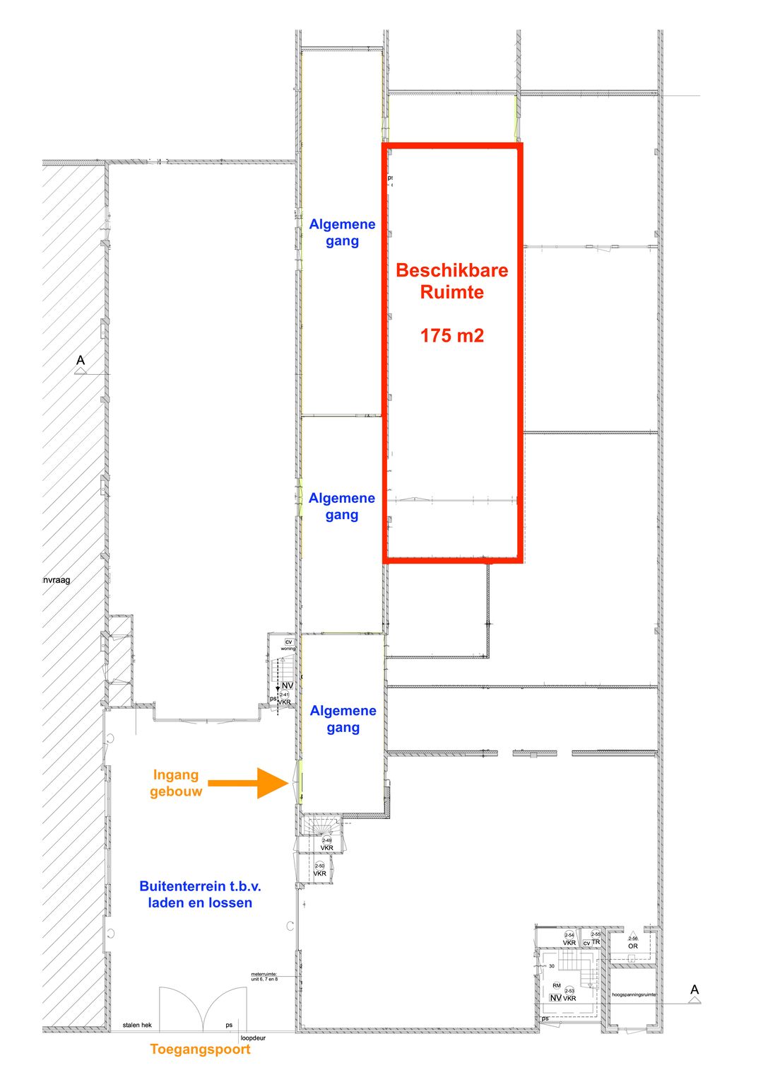 De totale oppervlakte van de bedrijfsruimte bedraagt 175 m².