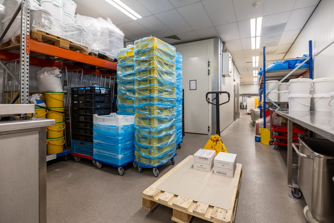 Deze aanvullende ruimte is eveneens foodsafe afgewerkt en beschikt over koelcellen, waardoor uitbreiding van productie, opslag of logistiek naadloos mogelijk is.