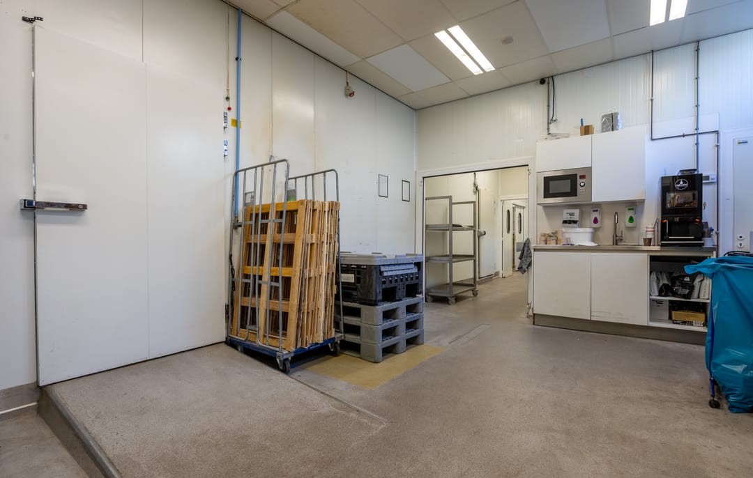 Leeg en ontruimd, inclusief koelcellen, en geschikt als foodsafe bedrijfsruimte.