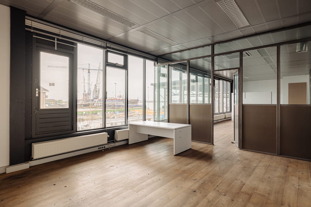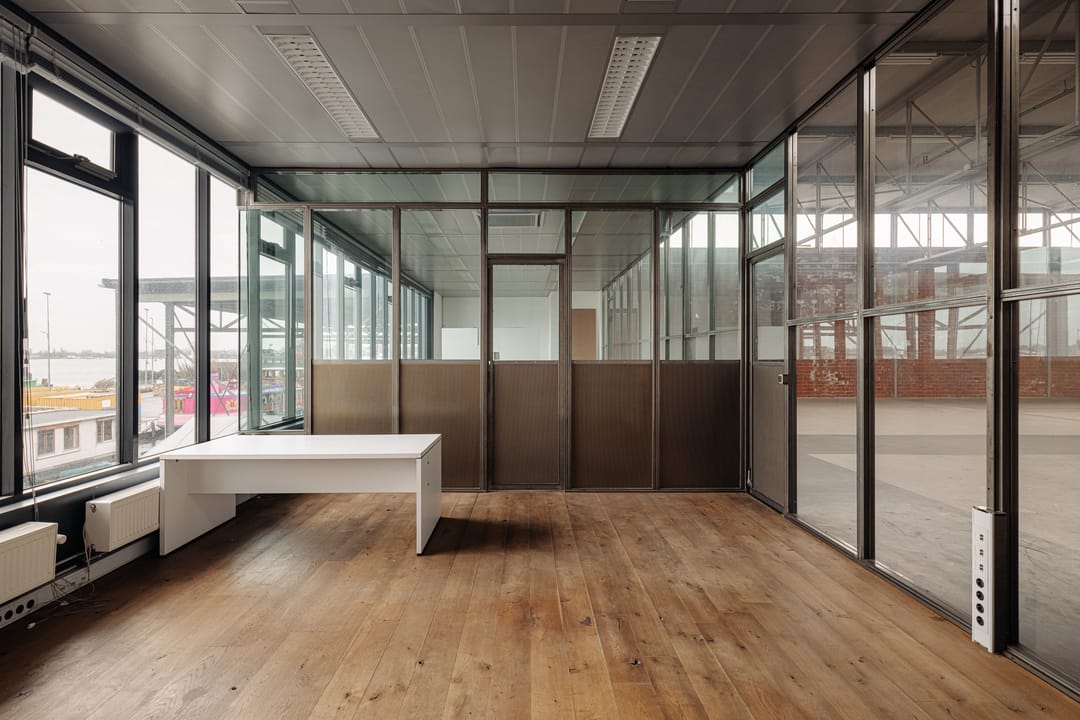 Aan de Nieuwendammerdijk in Amsterdam Noord wordt de voormalige opslagloods voor waterglasfabriek Gembo met buitenterrein te koop aangeboden. Het bedrijfsgebouw is totaal 1.499 m² BVO. Circa 505 m² bedrijfsruimte op de eerste verdieping is leeg en vrij van huur en dus ideaal voor een eigenaar gebruiker. Bijzonder aan deze ruimte is de aanwezigheid van een goederenlift, de vrije hoogte tot 6,3 meter en de dakconstructie met ramen aan de bovenzijde. Genoeg licht en ruimte om te kunnen ondernemen met uitzicht op het IJ.