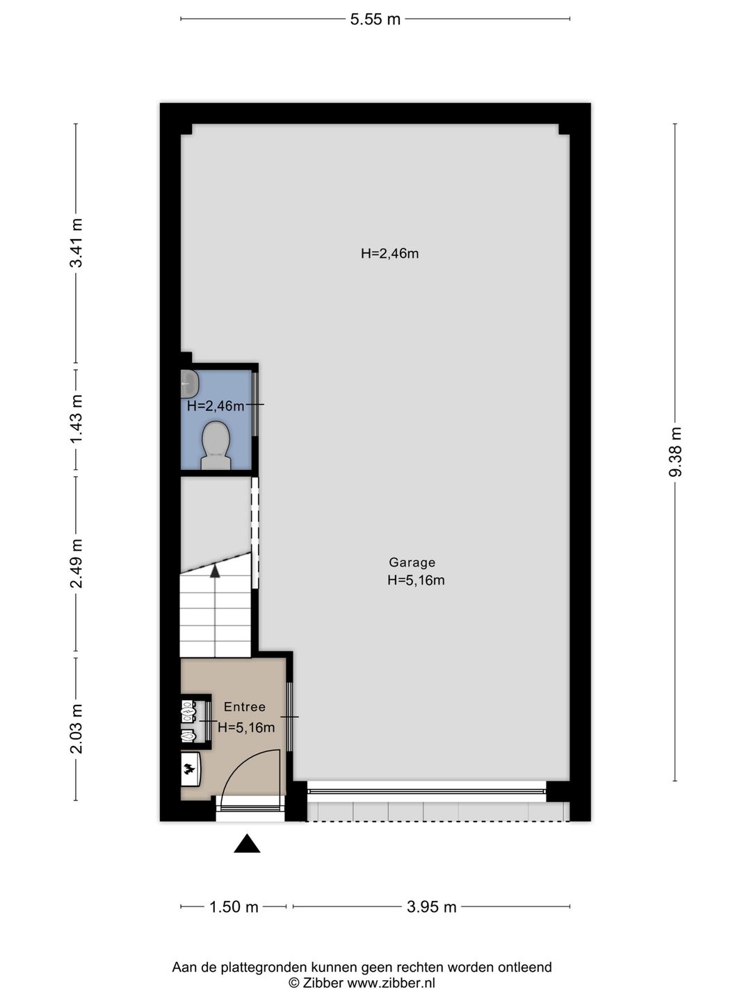De entree bevindt zich aan de voorzijde. De deur leidt daarbij direct naar de hal, waarna je de opslagruimte kan betreden of de trap vervolgen naar de 1e verdieping.