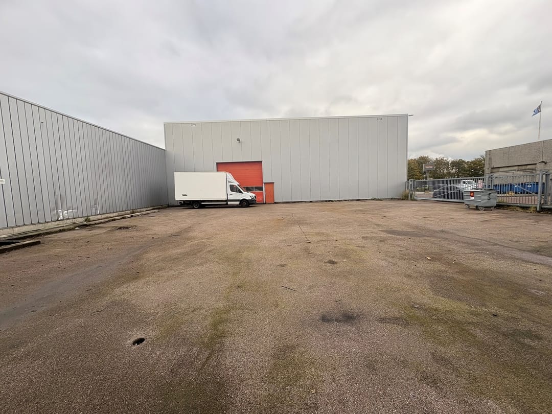 De bedrijfsruimte is zichtbaar vanaf de A5 en op korte afstand van een afrit gelegen. Oppervlakte VVO is 700 m² en daarnaast is er een ruim buitenterrein van 635 m². Op de hoek van het pand is er vanuit de entree en hal toegang naar de kantoorruimte, kantine en toiletgroep. De opslag c.q. bedrijfsruimte is behalve binnendoor ook door middel van een overheid- en loopdeur vanaf het buitenterrein bereikbaar. Het buitenterrein is met een hek en poort afgesloten.
