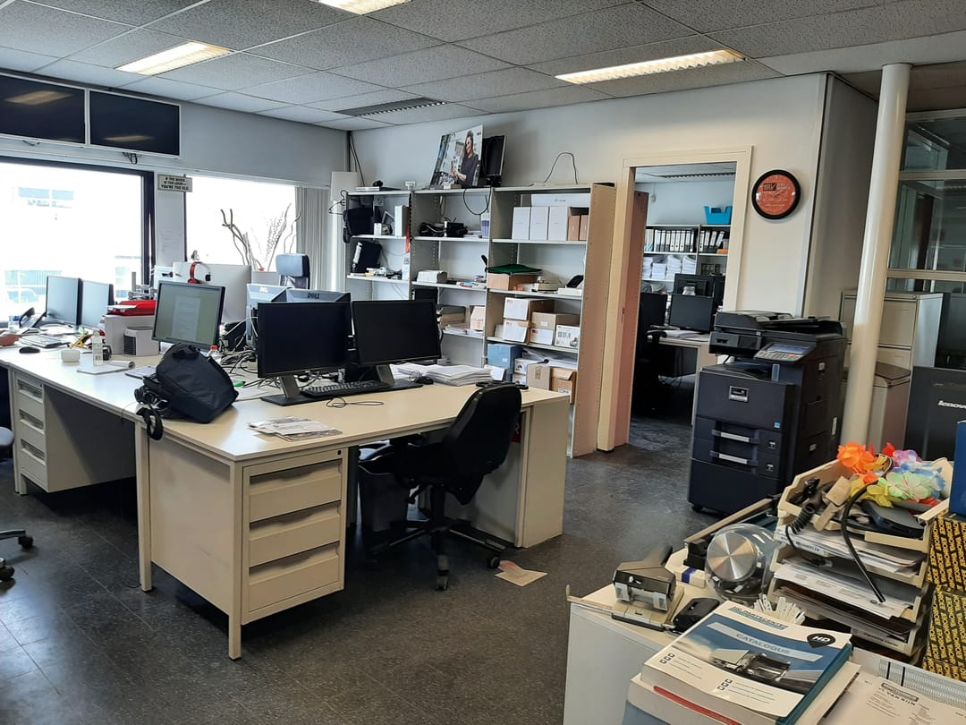 Het pand aan de Klokkenbergweg op het bedrijventerrein 'Bullewijk' omvat een bedrijfsruimte van ca. 700 m2 met elektrische overheaddeuren (hoogte van ca. 5.00 meter) en een kantoorruimte van ca. 545 m2 met pantry's en verschillende toiletten.