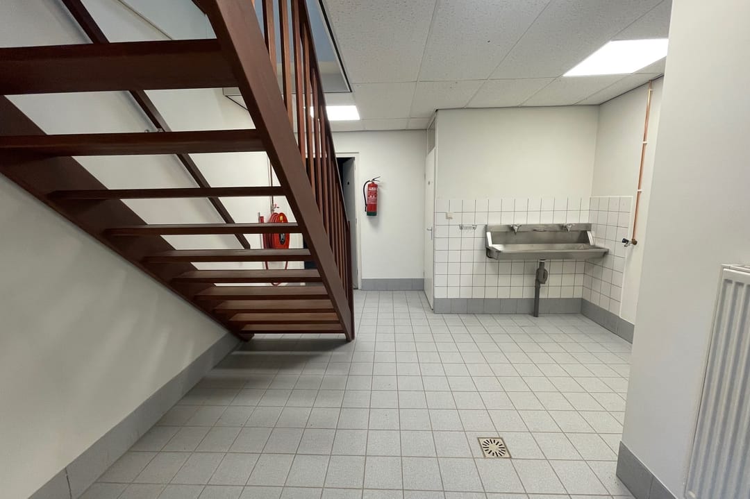 Begane grond: Entree, via dubbele toegangsdeuren is de kantoor/receptieruimte te bereiken. Kantine, tussenhal met trapopgang naar 1e verdieping en dubbele spoelbak, toiletruimte, doucheruimte. Bedrijfsruimte 1 van circa 196 m2 met overheaddeur en verdieping voor opslag, bedrijfsruimte 2 van circa 189 m2 met overheaddeur en lichtstraat.