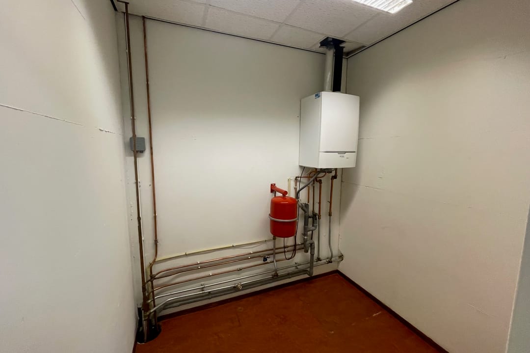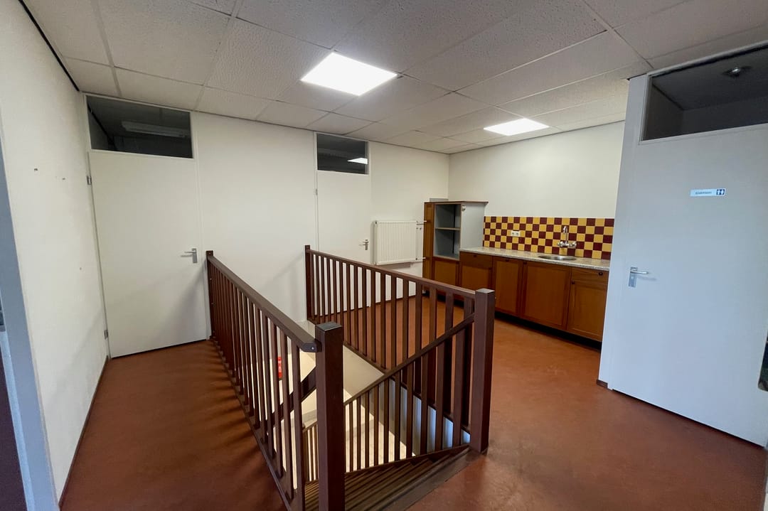 1e Verdieping: Via vaste trap te bereiken 1e verdieping, Overloop met pantry, toiletruimte, 3 kantoorruimtes en separate CV-ruimte.