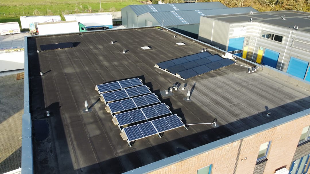 De dakconstructie bestaat uit een prefab betonnen elementenvloer met daarop isolatie en een bitumineuze dakdekking.
