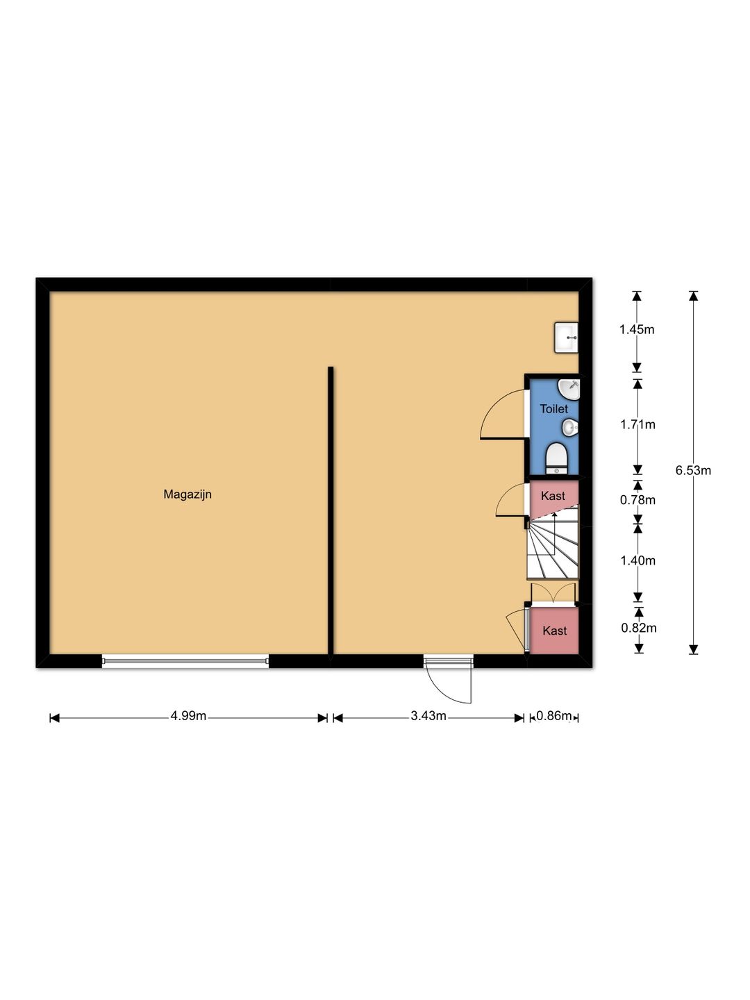 Plafondhoogte 2,6 meter (niet geschikt voor een autobrug).