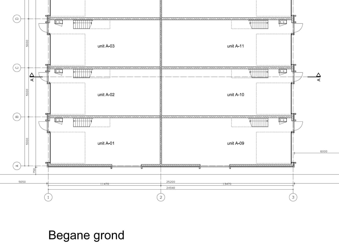 Riolering: elke unit wordt voorzien van een afgedopte vuilwaterafvoer van 110 mm onder de trap.
