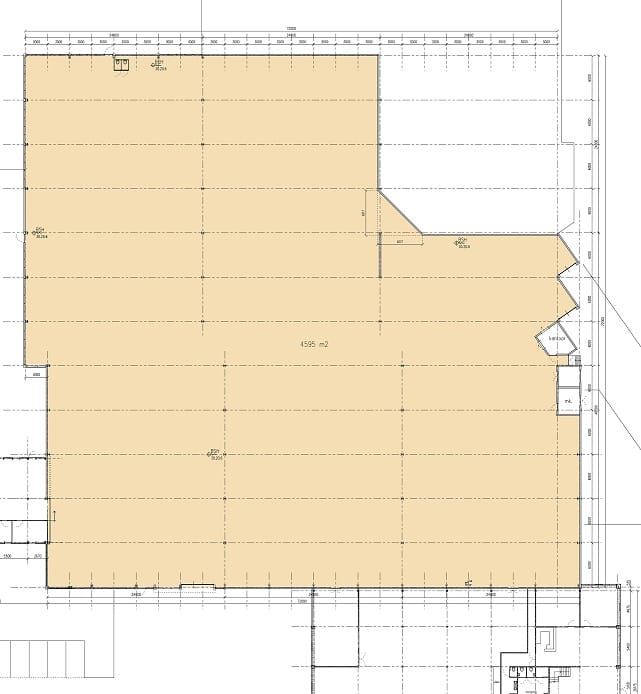 Bedrijfshal van ca. 4.600 m² met kantoor/kantine en toiletgroep.