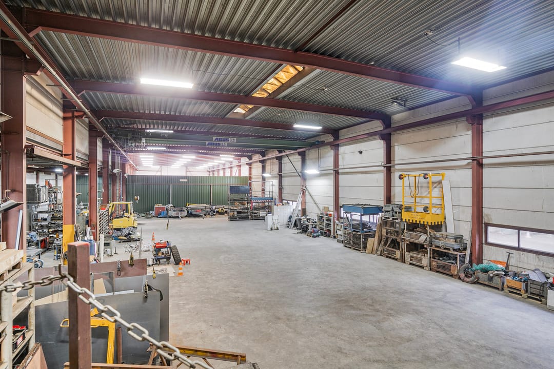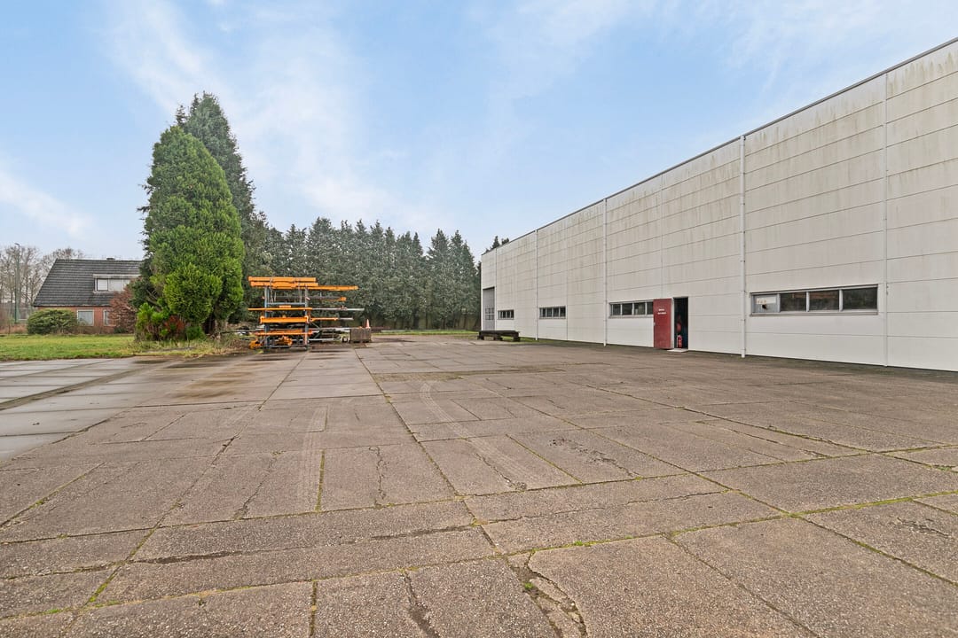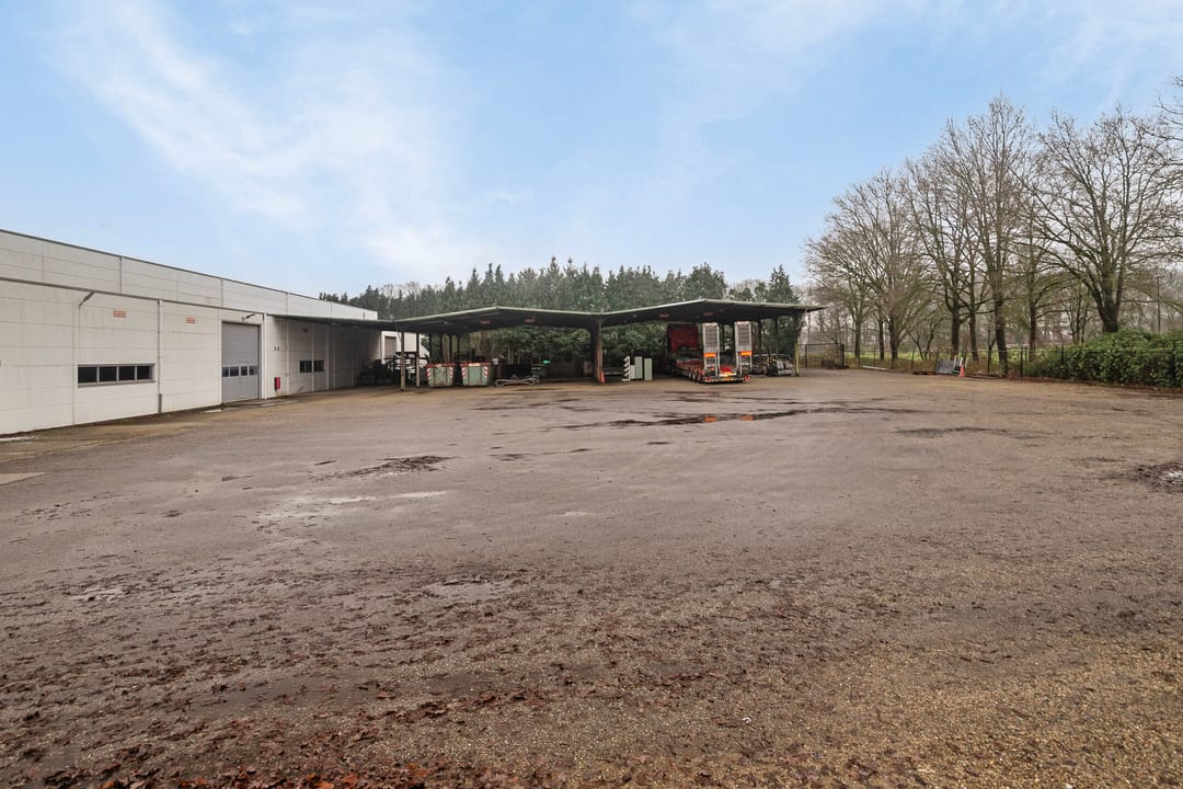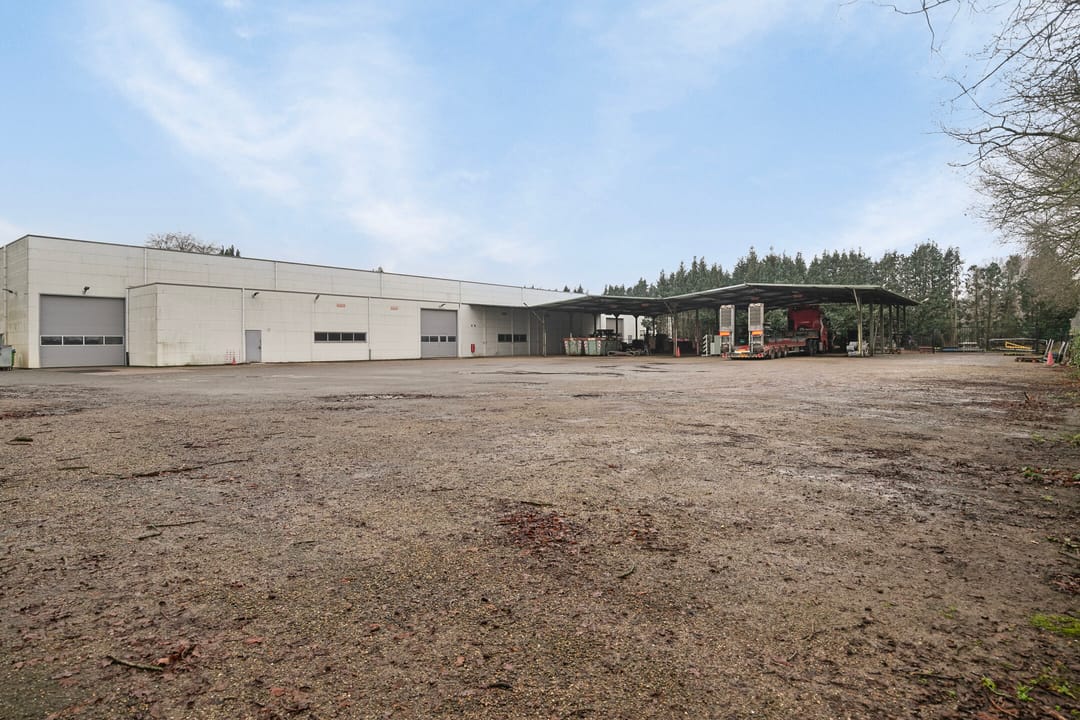 Circa 1.470 m² bedrijfshal met kantoor en overdekte opslag van ca. 700 m², verhard ongebonden buitenterrein met aan de voorzijde royale parkeervoorziening.