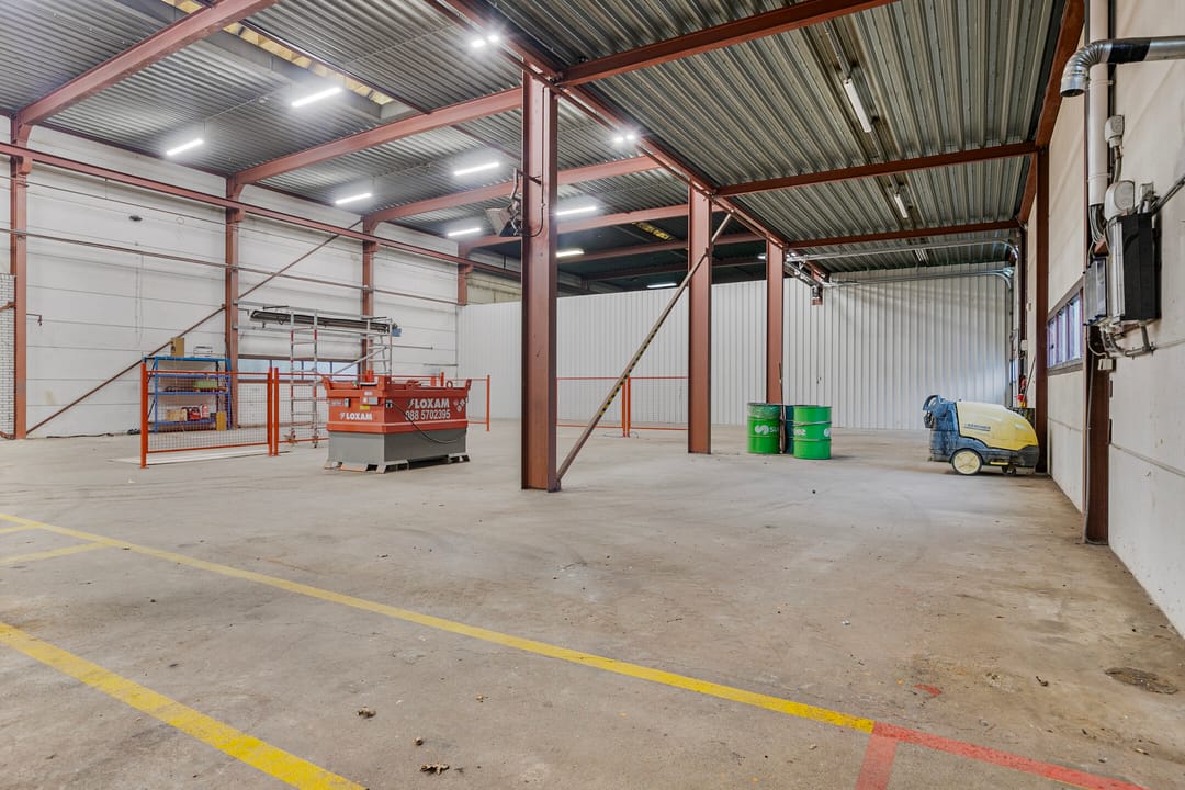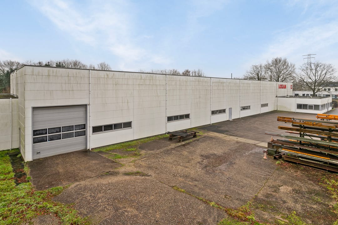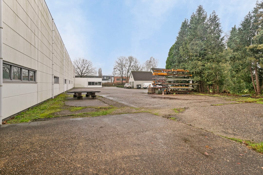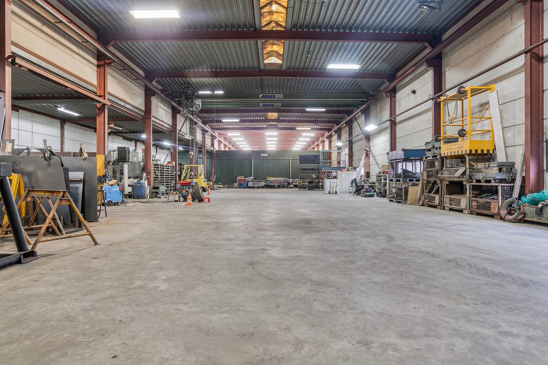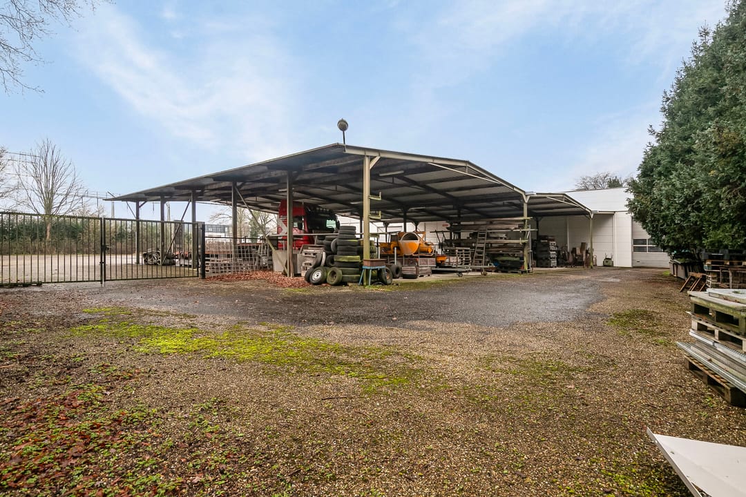 Circa 1.470 m² bedrijfshal met kantoor en overdekte opslag van ca. 700 m², verhard ongebonden buitenterrein met aan de voorzijde royale parkeervoorziening.