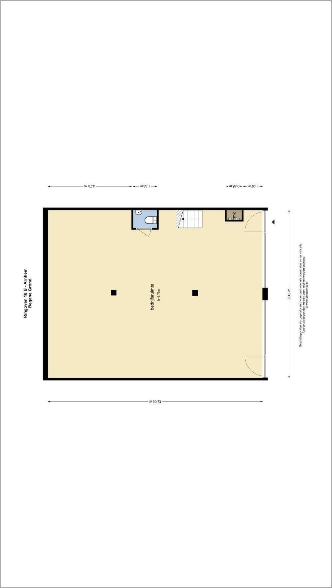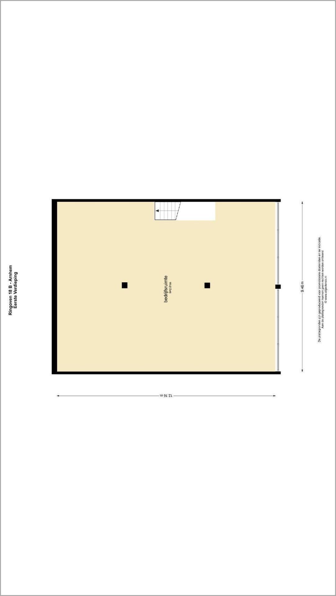 Ca. 3,6 meter in de bedrijfsruimte.