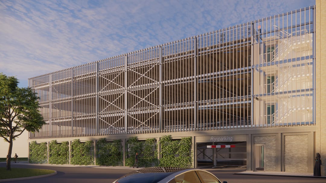De bedrijfsruimte in de parkeergarage is voorzien van een klinkervloer, een afsluitbaar hekwerk, stroompunten en basis led verlichting.
