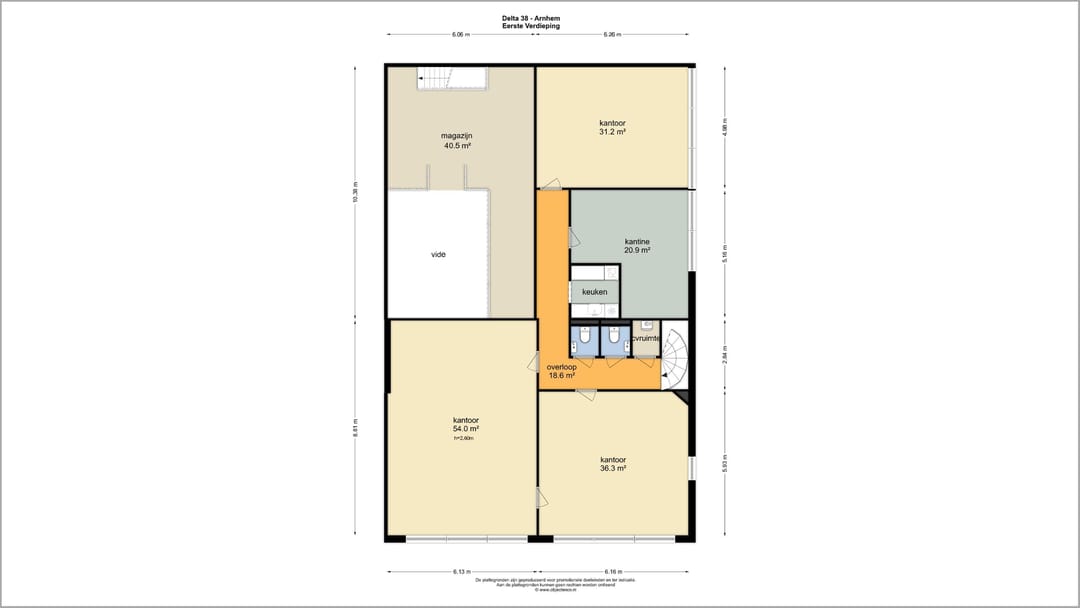 Voor verhuur is beschikbaar een totale oppervlakte van 430 m² (VVO) verdeeld over: