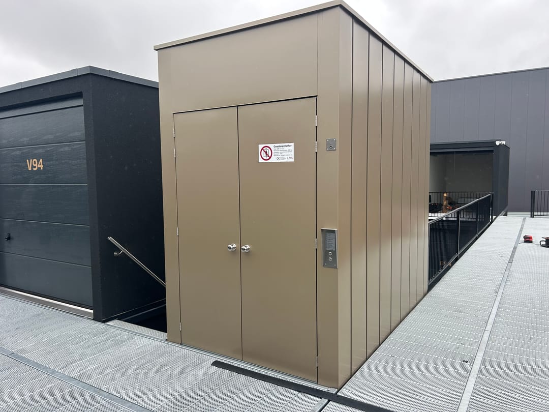 De 1e verdieping is per trap en (goederen) lift bereikbaar. Er kan geparkeerd worden op de daarvoor aangewezen parkeerplaatsen en er zijn bagagekarren en palletwagens aanwezig om je goederen naar je box te brengen