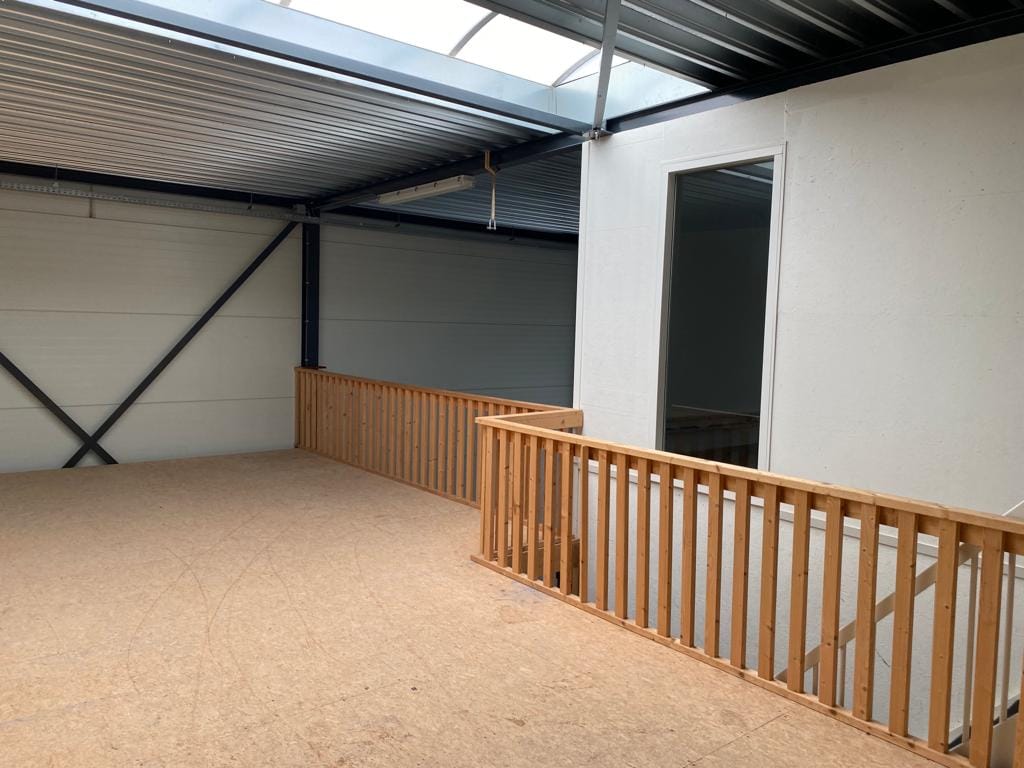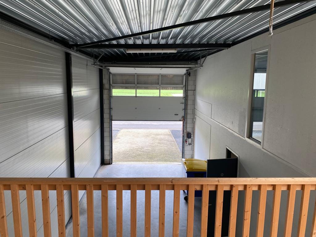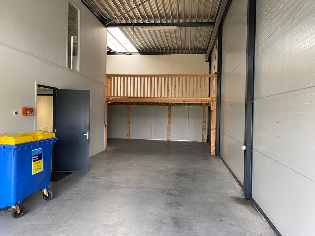 Circa 100 m² bedrijfsruimte voorzien van een entresolvloer met nog eens circa 50 m² vloeroppervlak op de verdieping. Deze bedrijfsruimte beschikt over een elektrische bedienbare overheaddeur(4x4 m), vloerverwarming en lichtstraat. De vrije hoogte onder de dakconstructie is circa 5,40 m.