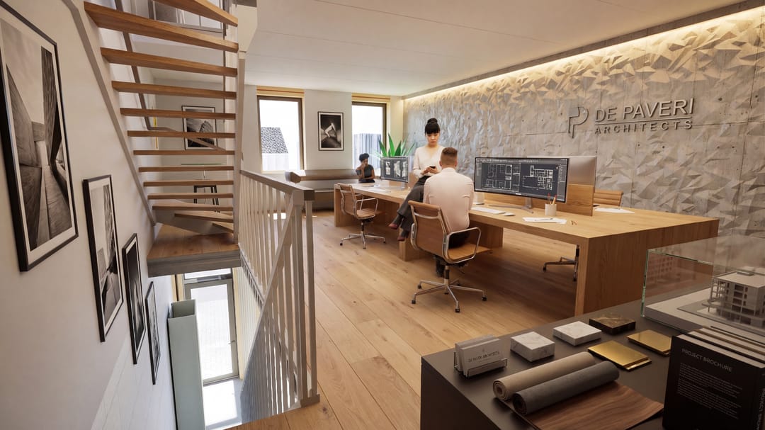 Type D betreft de compacte 2-laagse units binnen het project en biedt circa 112 m² BVO. Deze units vallen onder bouwnummers 9 t/m 16. Type D is geschikt voor ondernemers die een zelfstandige en efficiënte bedrijfsruimte zoeken, zonder onnodige extra meters, maar met voldoende ruimte voor werk, opslag en kantoor.