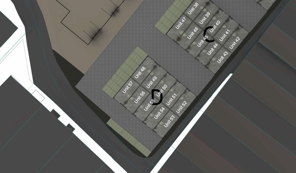 • Type D | units 50, 51, 54, 55, 57: 116 m² (43 + 43 + 30 m²) | vanaf € 239.000 v.o.n. | | voorzien van dakterras