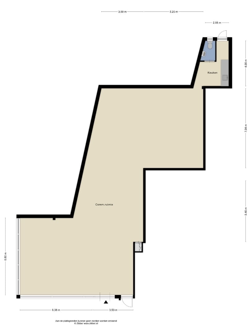 De winkel/kantoorruimte maakt onderdeel uit van een klein appartementencomplex bestaande uit twee appartementen, te weten de te verkopen winkel alsmede een bovenwoning met een eigen nummer.