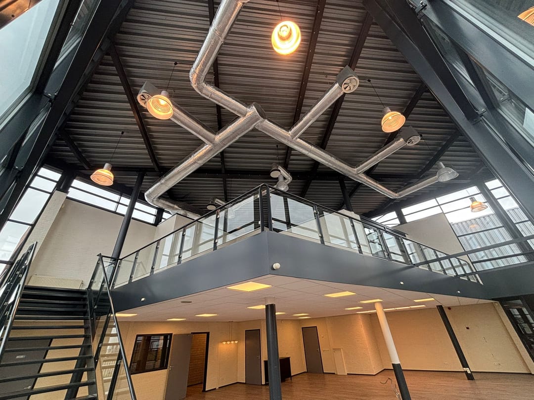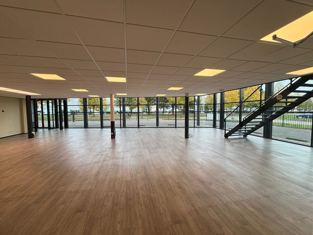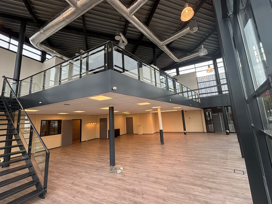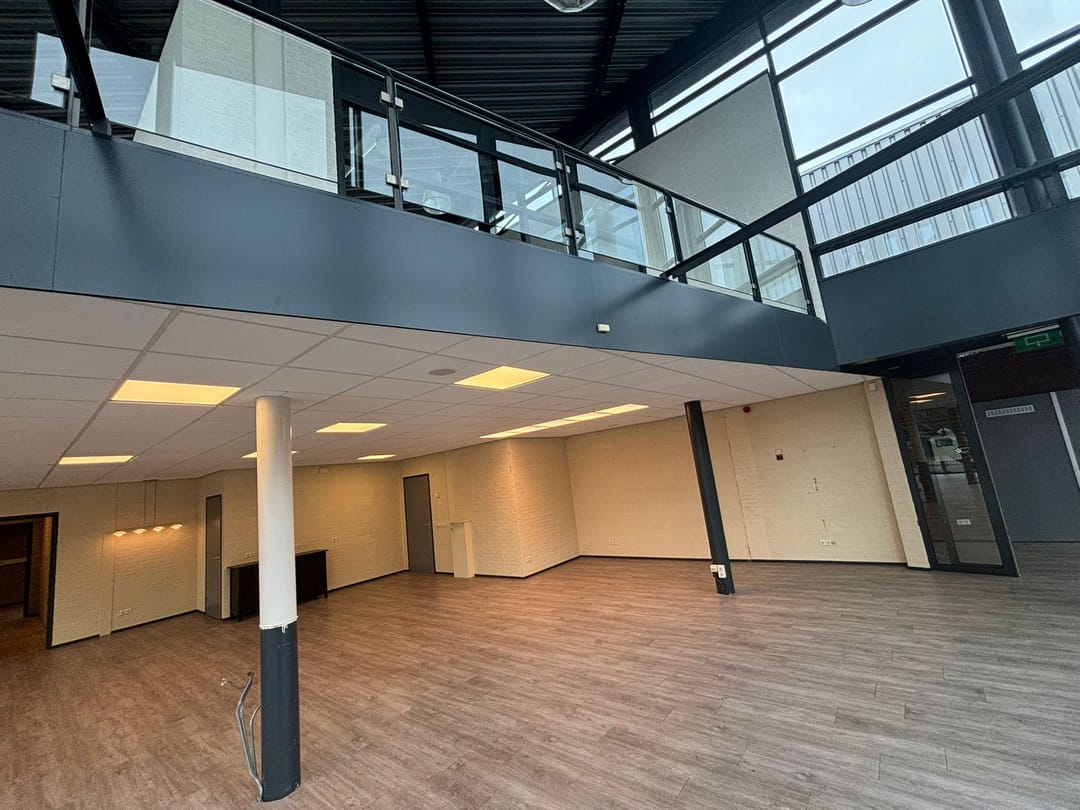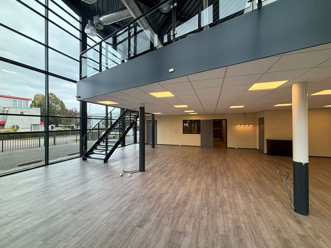 Het object bestaat aan de voorzijde uit een glazen vliesgevel met schuin lessenaarsdak. Dit gedeelte, met een grote vide, is uitstekend geschikt als een showroom, ontvangst- of presentatieruimte. De opvallende architectuur zorgt voor een unieke, onderscheidende sfeer in het object.