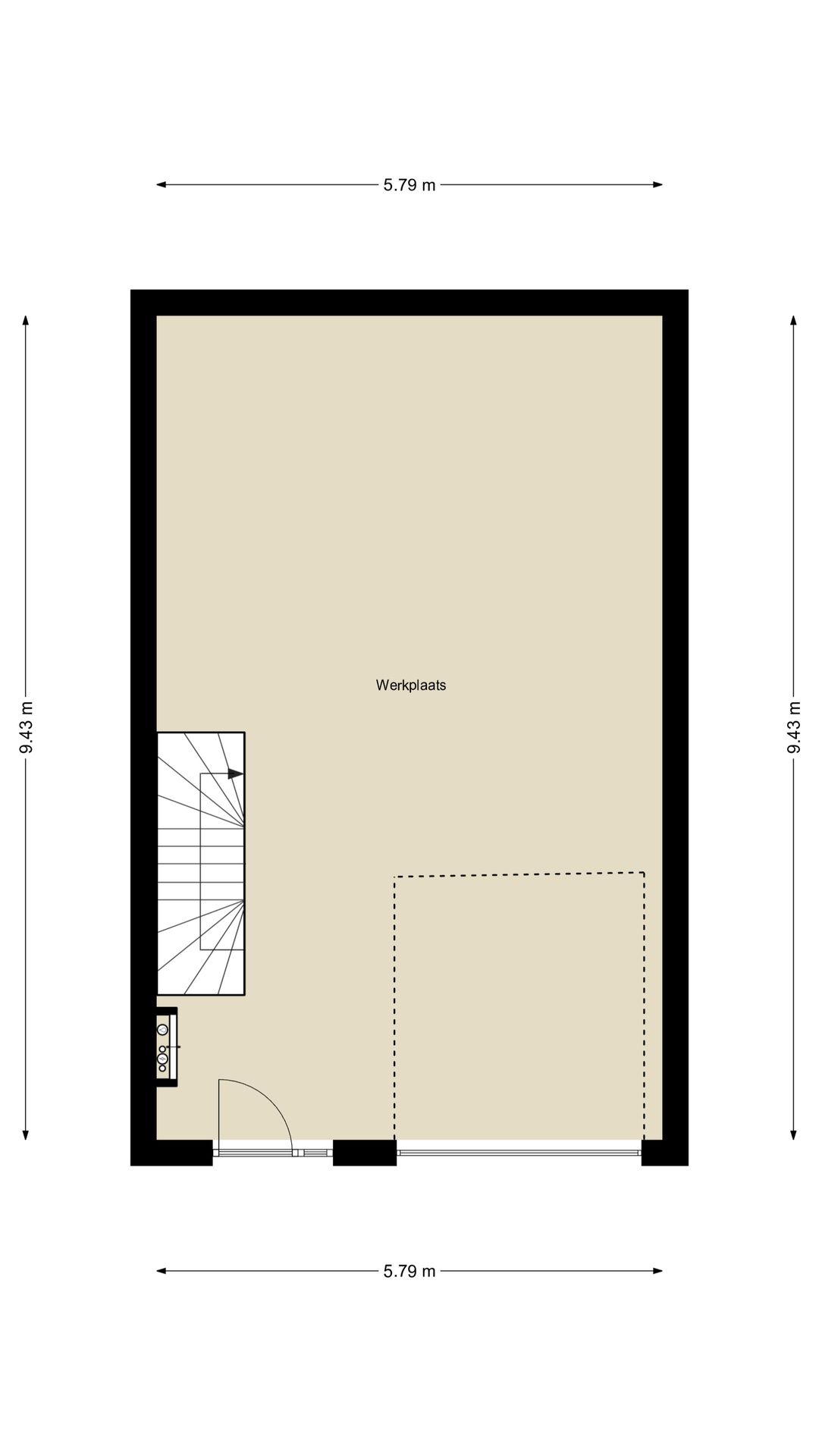 • Overheaddeur van circa 3 meter hoog;