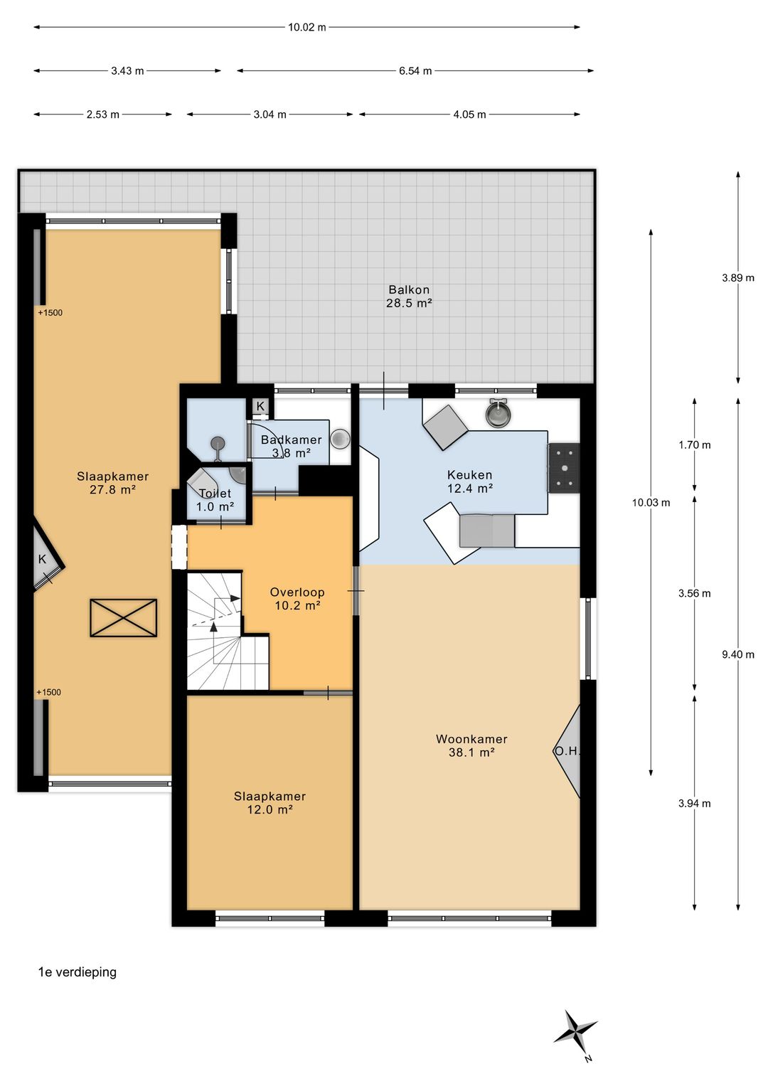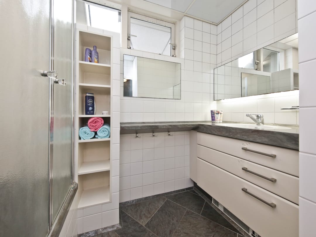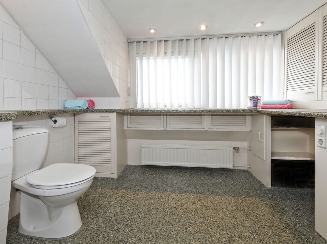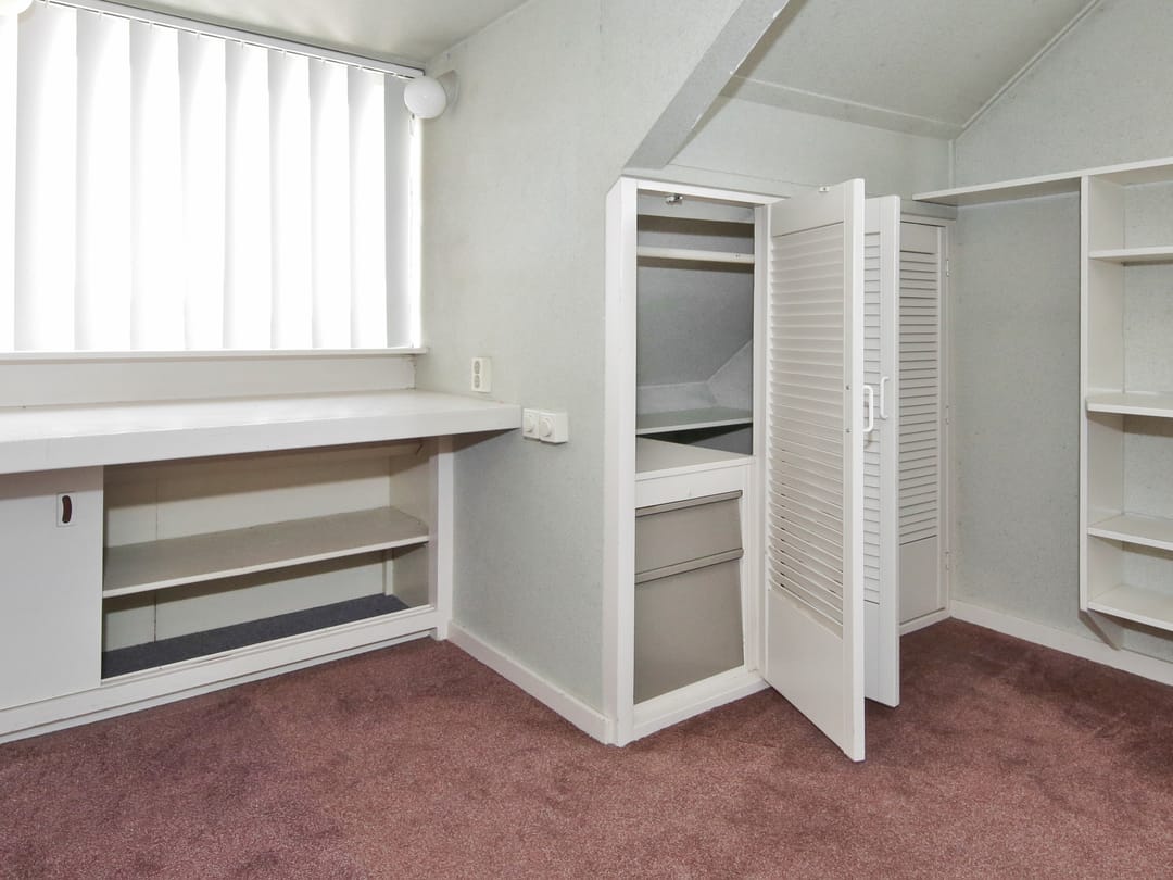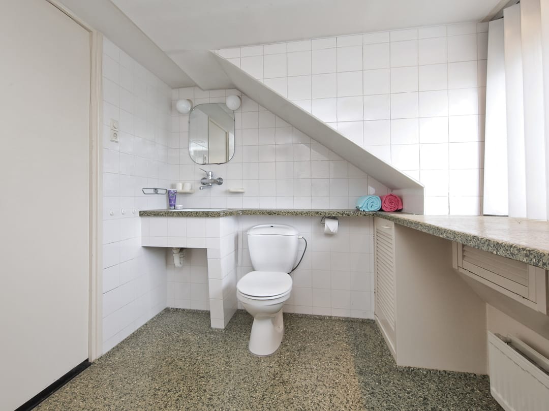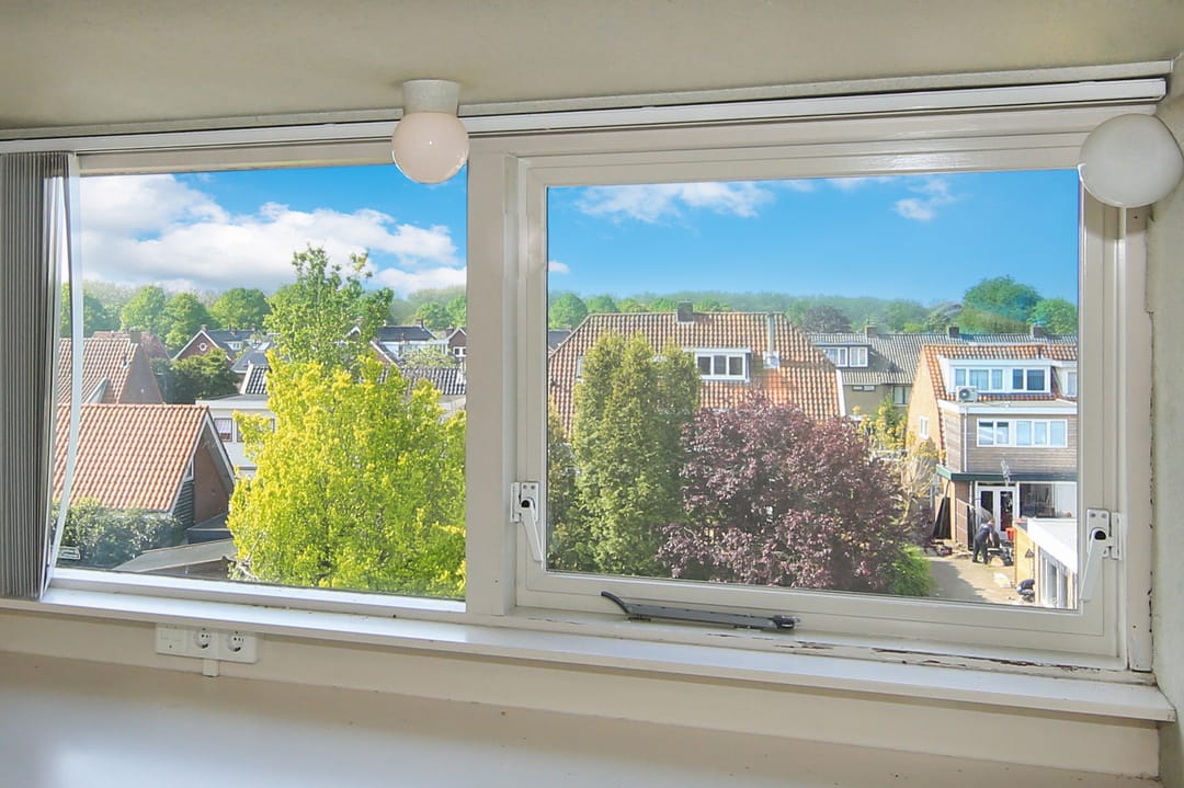 From this original double upstairs apartment, you can gaze for hours at the street, the water, the greenery, and the sky. Relax on the enormous terrace at the back, comfortably situated on the southwest side. The first floor of the apartment offers almost 100 m² of space. For inspiration, we've added some artist's impressions, for example, to combine the living room (38 m²) with the side room (12 m²) into one space and integrate it into the current semi-open kitchen (12 m²). This floor also features a (bed)room of almost 28 m² that runs from front to back and offers many possibilities, especially because the bathroom and toilet are adjacent to this space.