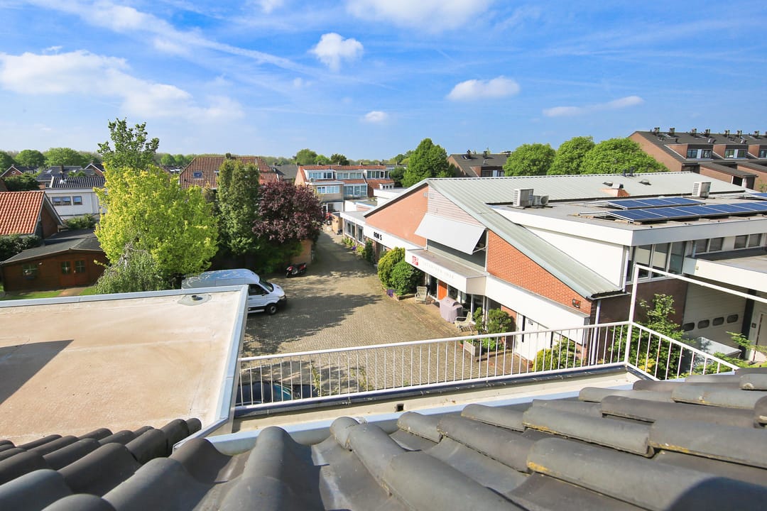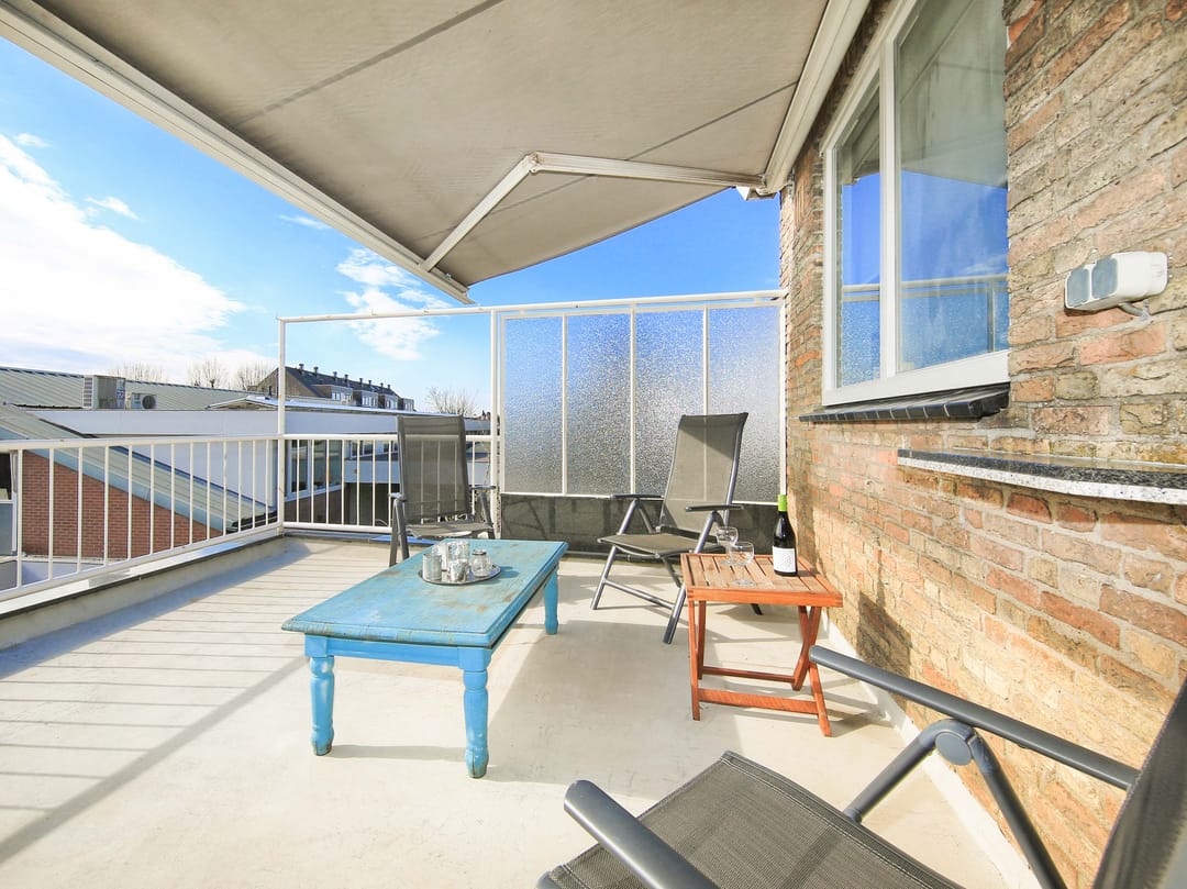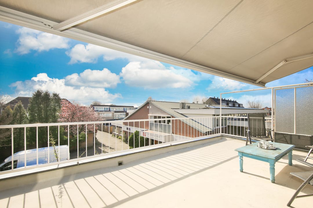 Entrance, spacious landing/hall of approximately 10 m² with a coat closet and toilet with a hand basin, and doors to all rooms. Living room of approximately 38 m² with a fireplace and a semi-open kitchen, equipped with various built-in appliances, which provides access to the spacious southwest-facing roof terrace of approximately 29 m². Bathroom with a vanity unit and shower enclosure, two spacious bedrooms of approximately 12 m² and 28 m², the latter of which has a built-in wardrobe and a separate attic accessible via a loft ladder.