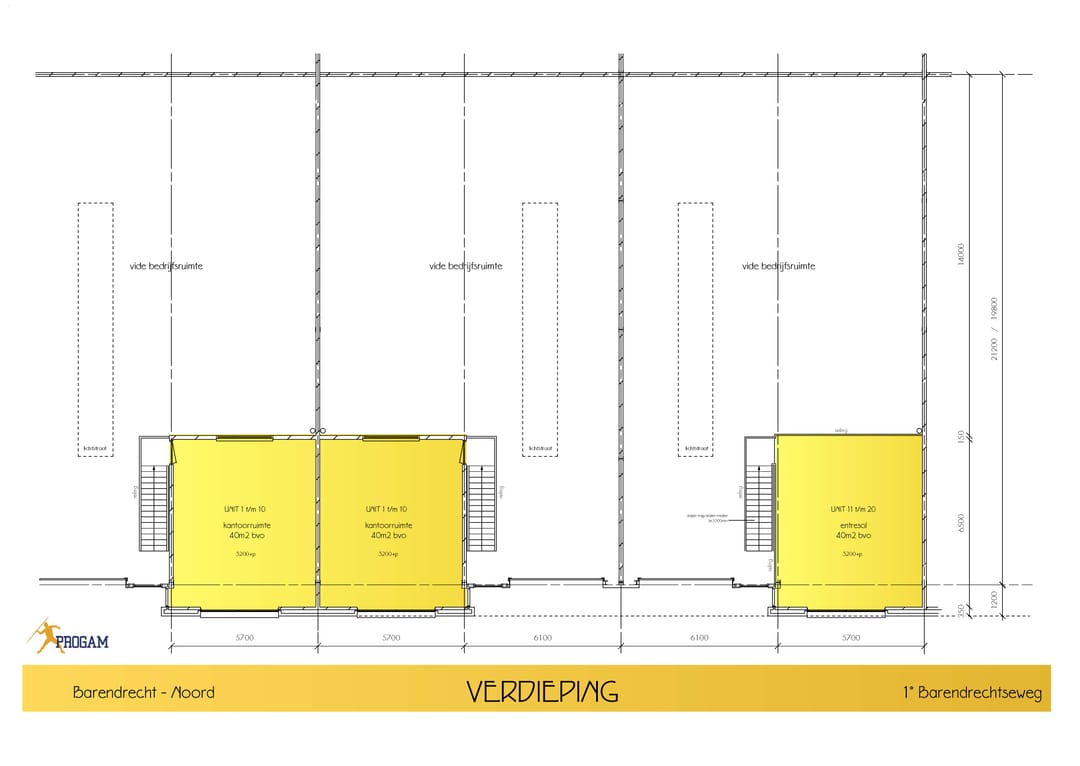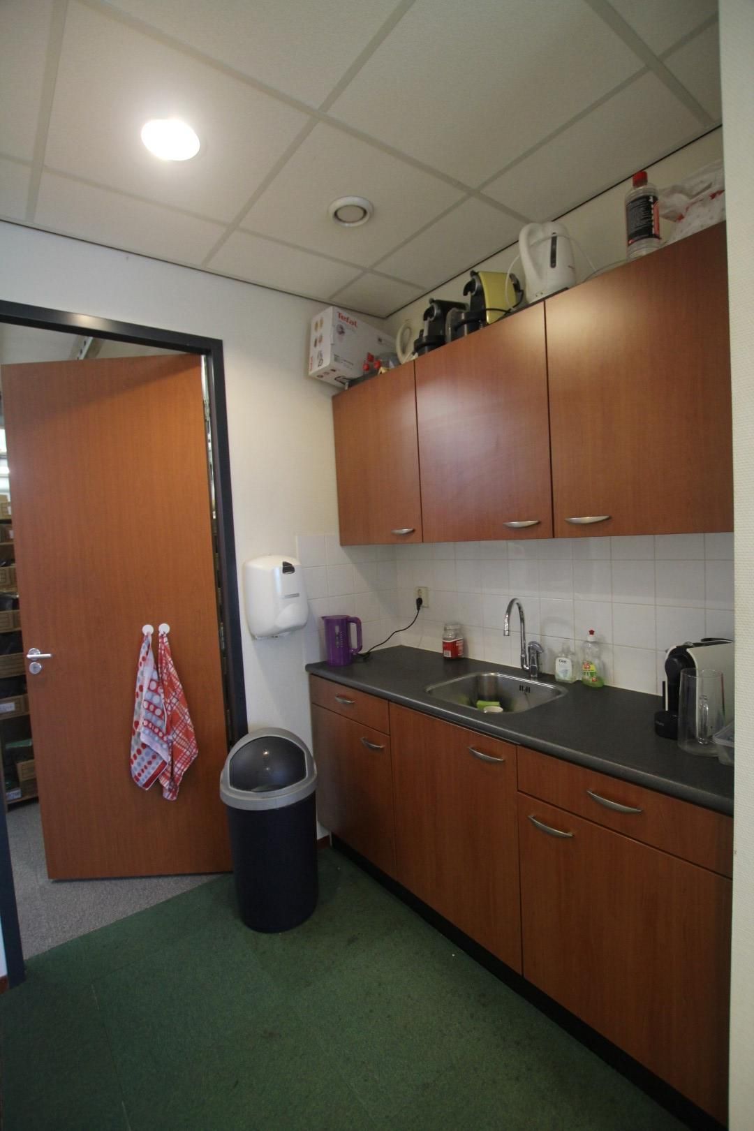 - indeling begane grond: één kantoorcompartiment, pantry en doorgang naar de bedrijfsruimte;