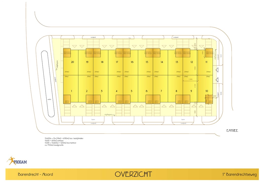- ca. 40 m² betonnen entresolvloer met directe daglichttoetreding boven het kantoorgedeelte;