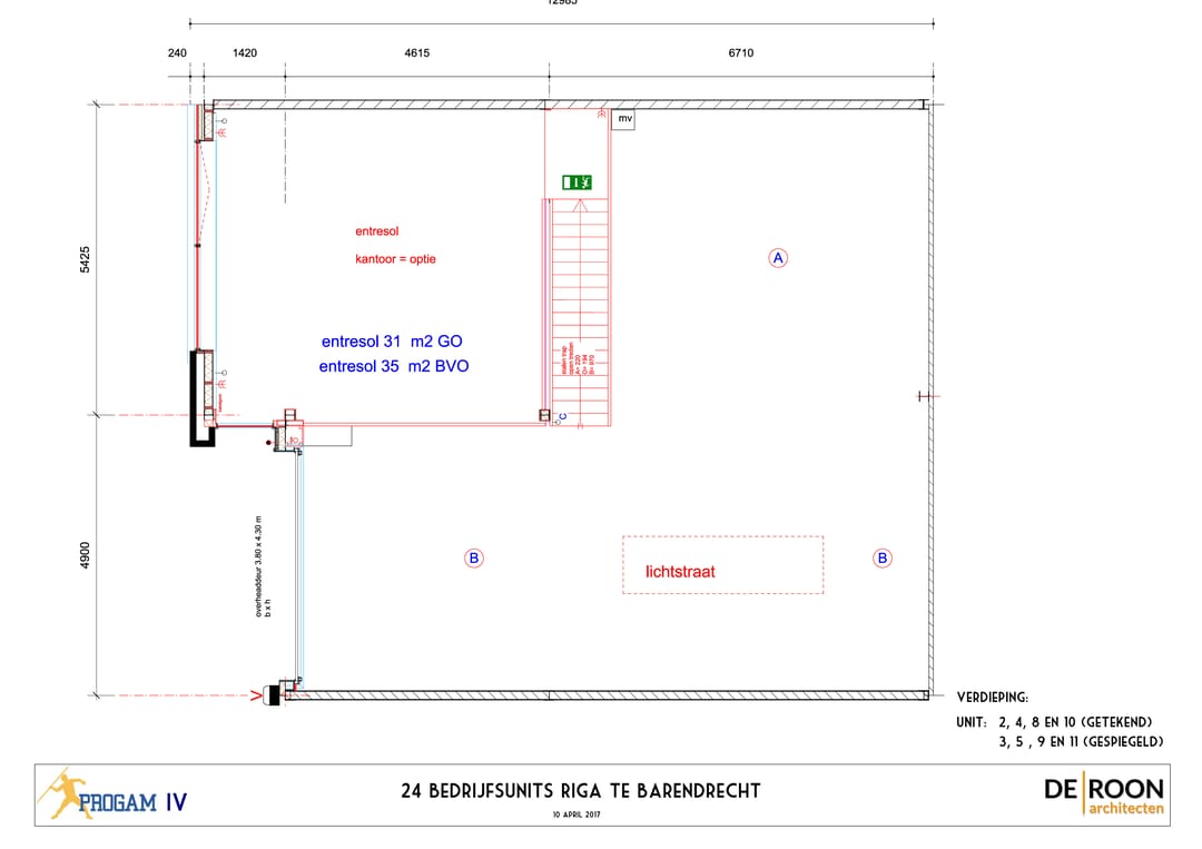 De begane grond betreft een functionele bedrijfsruimte, voorzien van o.a. elektrisch bedienbare overheaddeur, geheel betegelde toiletruimte, verlichting en daglichttoetreding d.m.v. lichtstraat.