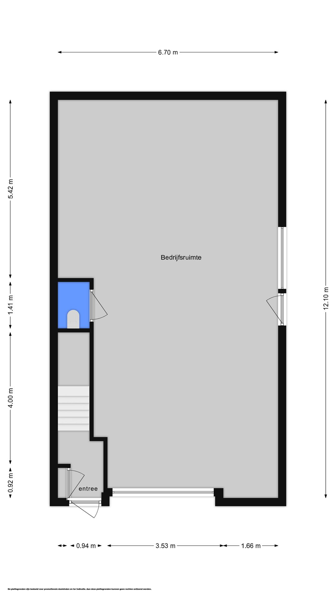 • Loopdeur en elektrische bedienbare overheaddeur van ca. 3,5 x 3,5 meter (niet aangesloten);