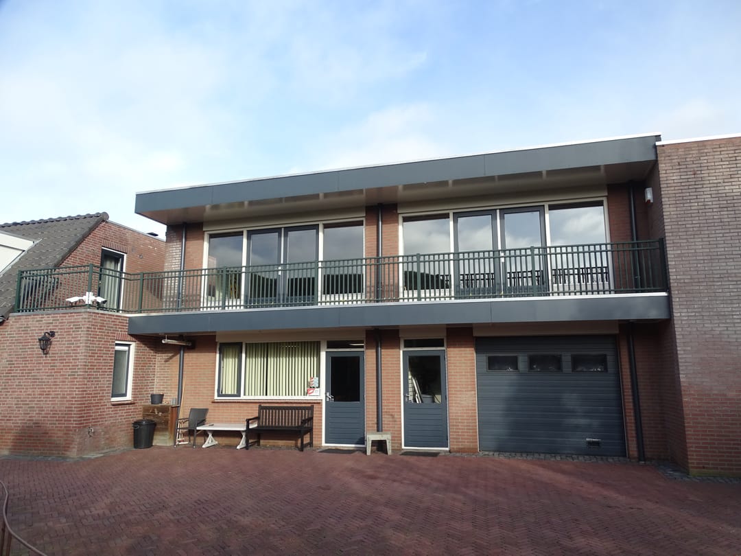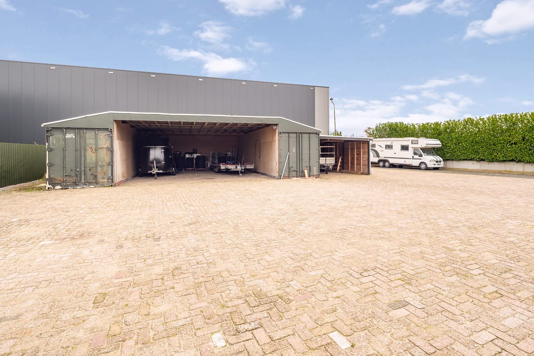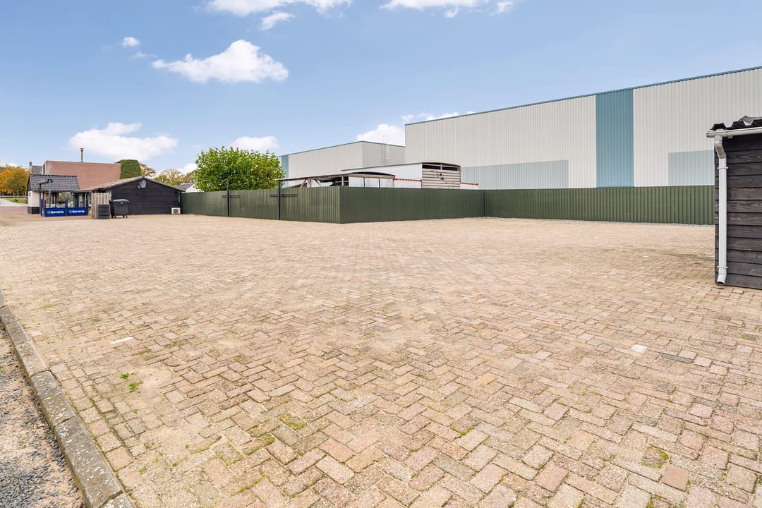 Het achterste deel van het terrein groot ca. 950 m2 is grotendeels bestraat en daar staat momenteel een eenvoudige opslag/overkapping als extra stalling en/of bergruimte. Dit terrein geeft de mogelijkheid om een nieuwe hal/berdrijfsruimte te realiseren. Een perfecte uitbreidingsmogelijkheid dus voor een ondernemer die meer (bedrijfs-)ruimte nodig heeft.