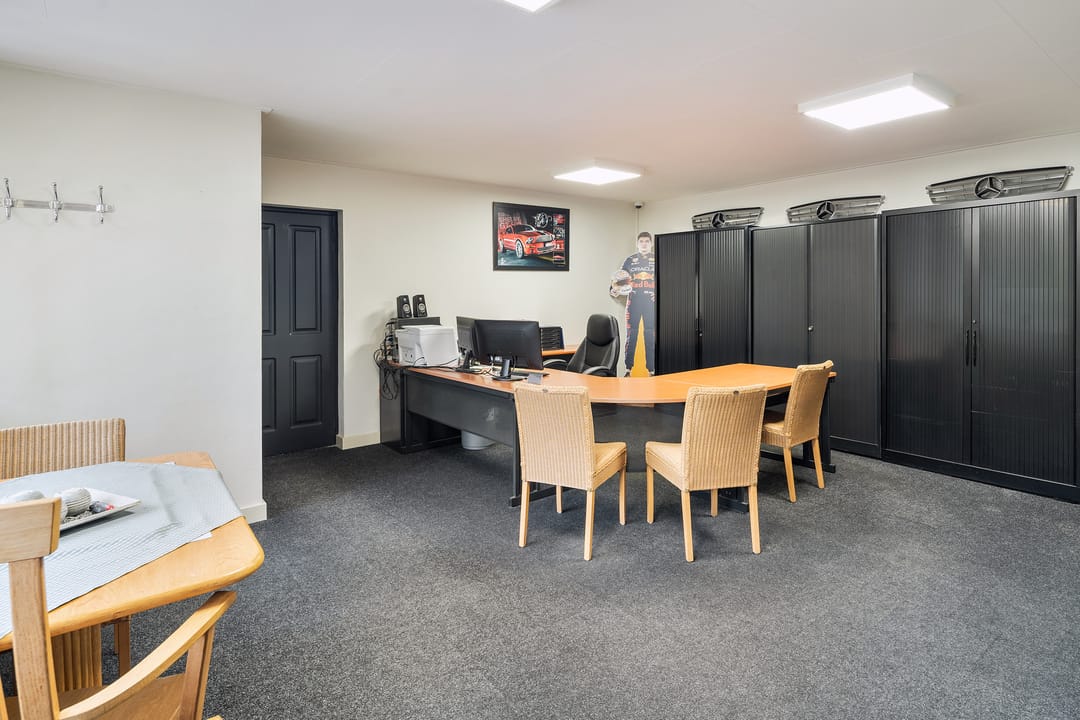 Aansluitend is een kantoorruimte/hobbykamer groot ca. 33 m2 met een pantry en vaste kast met de CV-combiketel.