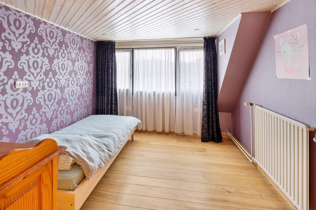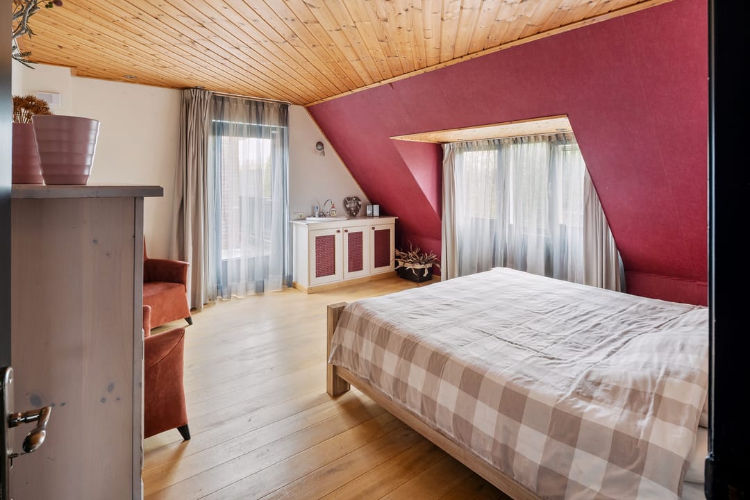 Slaapkamer aan de voorzijde met dakkapel en airco, slaapkamer met grote kledingkast en slaapkamer met wastafelmeubel.