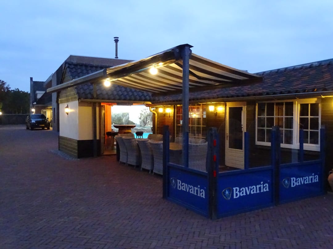 Naast het café is een terras met dubbele luifel voor schaduw. Een ideale plek voor een feestje of om samen te komen met vrienden en/of familie! Tegenover de man cave vind je een gezellige openvuur-lounge gedeelte.