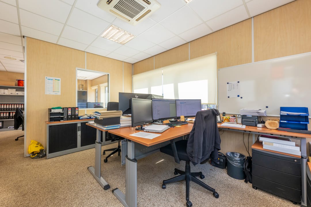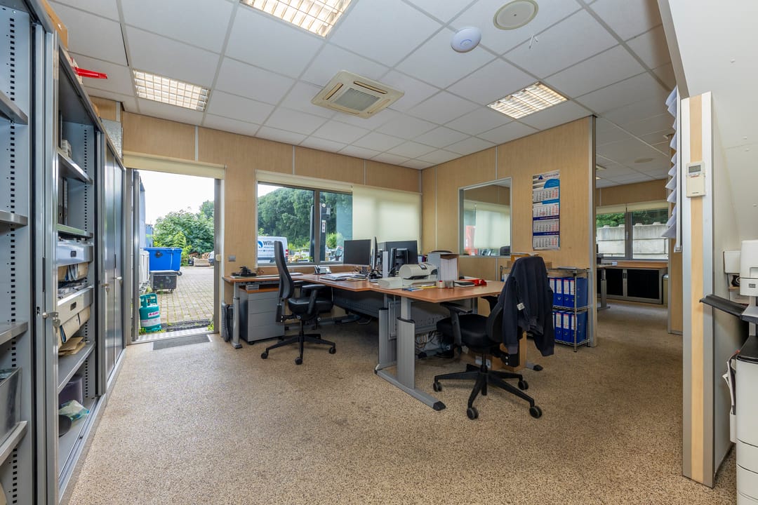 Entree / hal, meterkast, kantoor secretariaat / administratiekantoor met balie, keuken/pantry, dubbele toiletgroep, kantine.