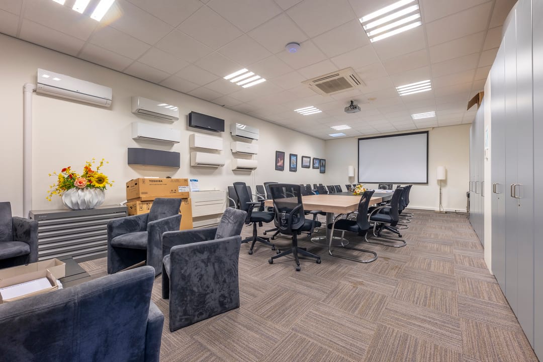 - Air conditioning, overhead doors, three-phase electric power, concrete floor, heater, toilet, pantry, built-in fittings and windows can be opened