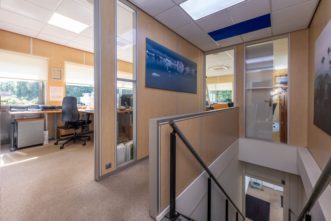Plafonds: Kantoren voorzien van verlaagde systeemplafonds inclusief ledverlichting.