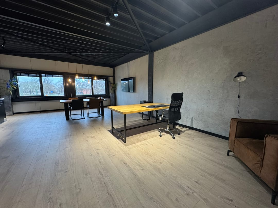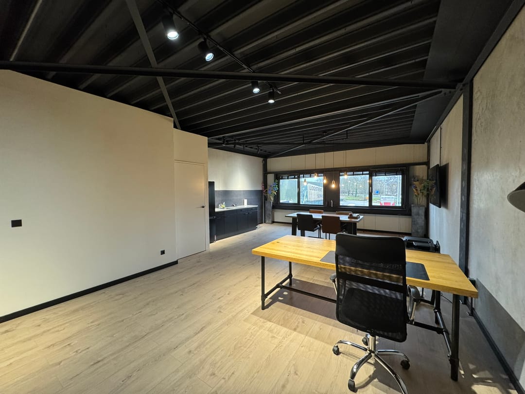Verdieping: Ruim kantoor, goed te gebruiken als werkplek, vergader-/ontvangstruimte. Voorzien van een keuken, een bergkast en te openen ramen voor een fijne werkomgeving.
