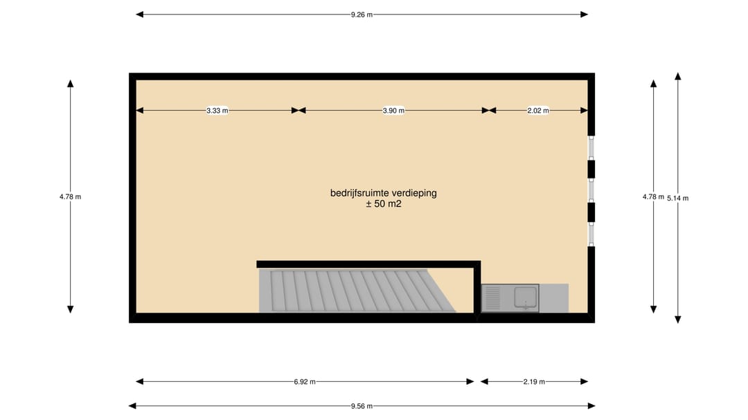 - de begane grond is voorzien van een monolithisch afgewerkte betonvloer met een toelaatbare vloerbelasting van ca. 1.000 kg/m²;