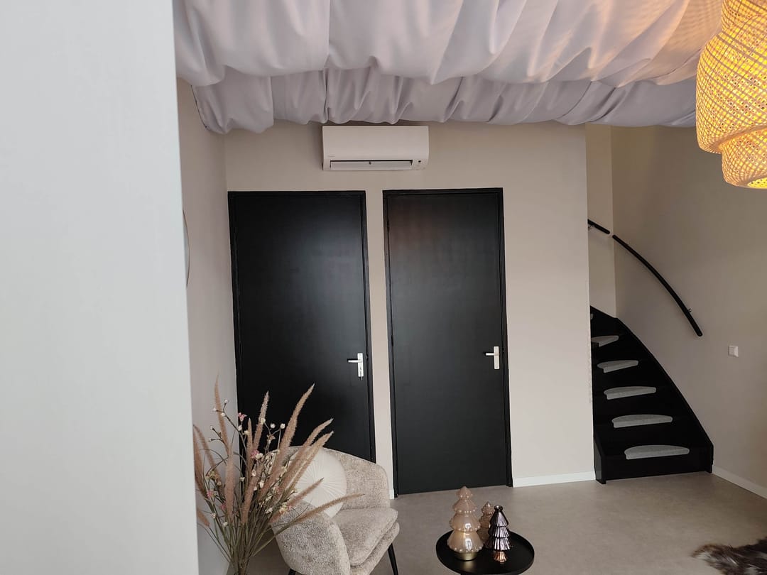 Op de begane grond bevindt zich het toilet en een ruime bergkast. Op de verdieping is een praktische en representatieve pantry geïnstalleerd en via een airco-installatie wordt de unit gekoeld en verwarmd.