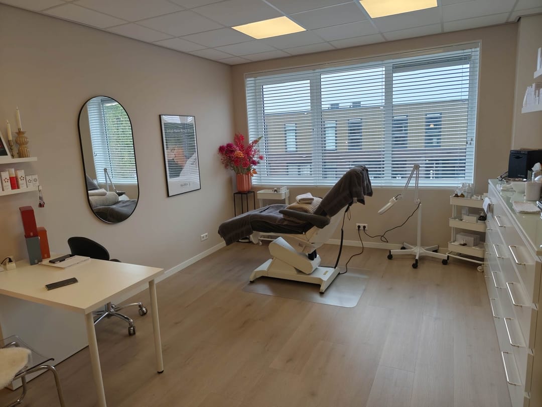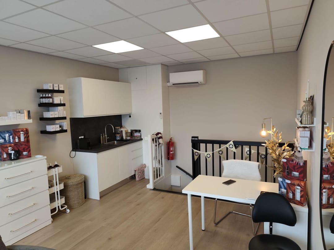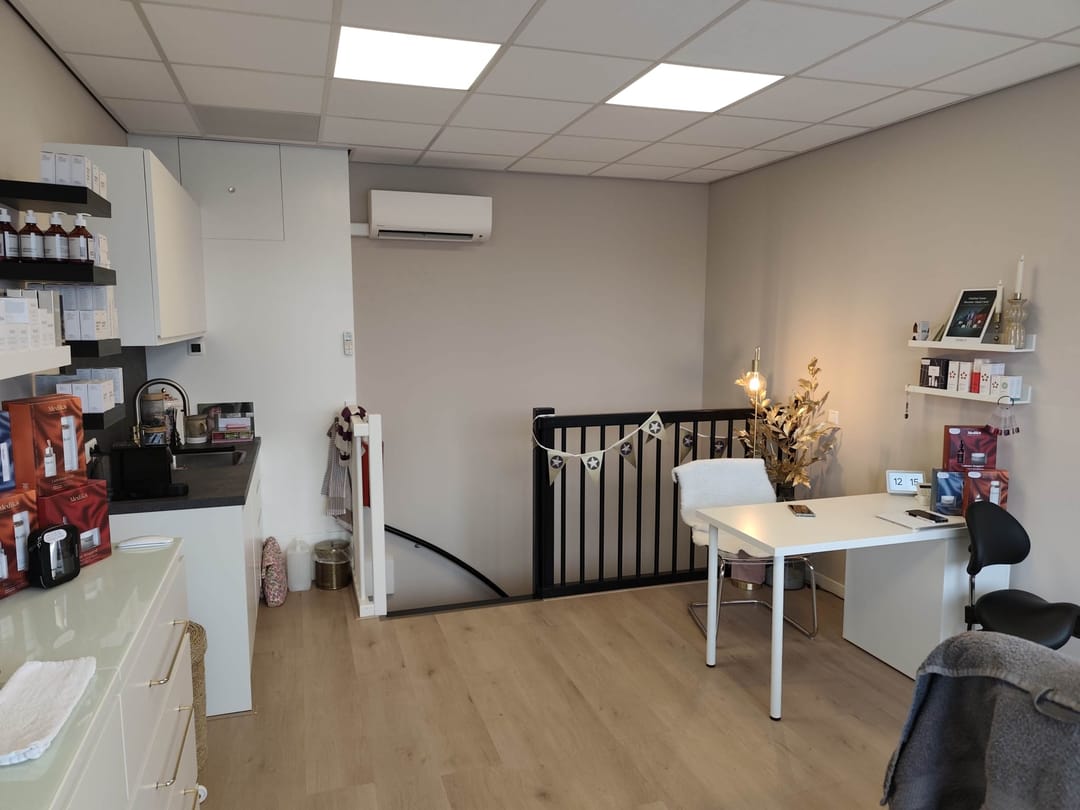 Deze unit is thans in gebruik als schoonheidssalon en ziet er zeer verzorgd uit. De huidige huurder heeft geïnvesteerd in mooie vloerafwerking zowel op de begane grond als op de verdieping ( pvc klik + ondervloer) , raambekleding, heeft een systeemplafond op de verdieping aangebracht en de wanden zijn voorzien van lichte kleuren. Als je deze zaken ook mooi vindt en het past bij je bedrijf dan kan je deze overnemen tegen een nader te bepalen bedrag.